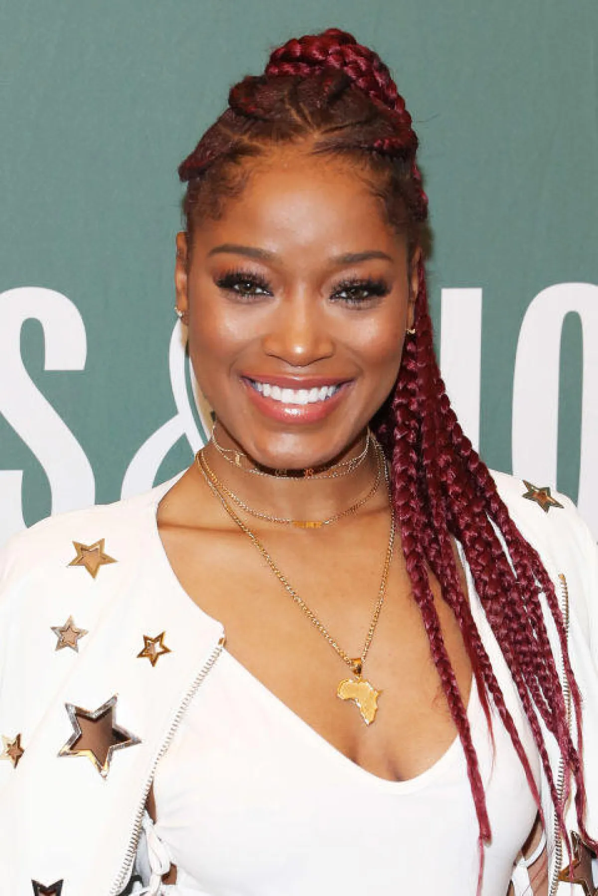 كيكي بالمر Keke Palmer: رفعت ضفائرها البورغندية على شكل ذيل حصان عالية.