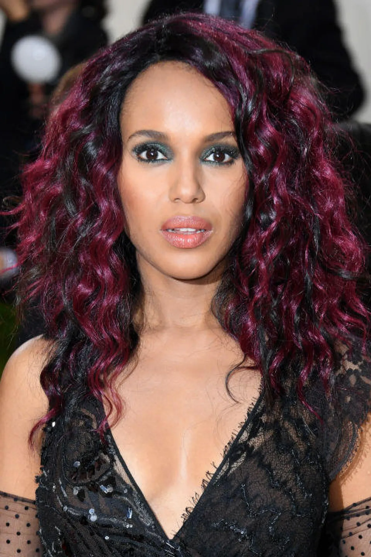 كيري واشنطن Kerry Washington: اعتمدت على الخصلات، لتسليط الضوء على لون شعرها البورغندي المشرق.