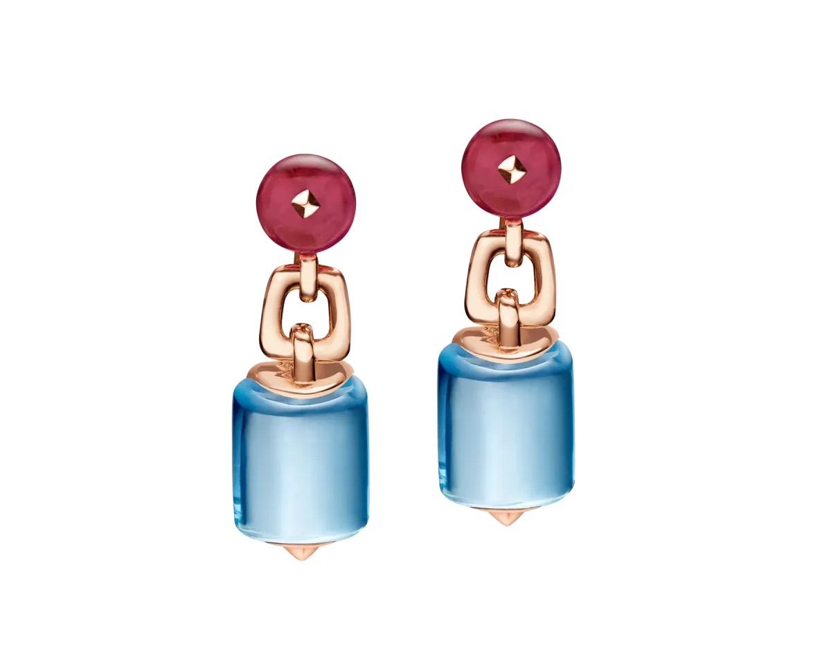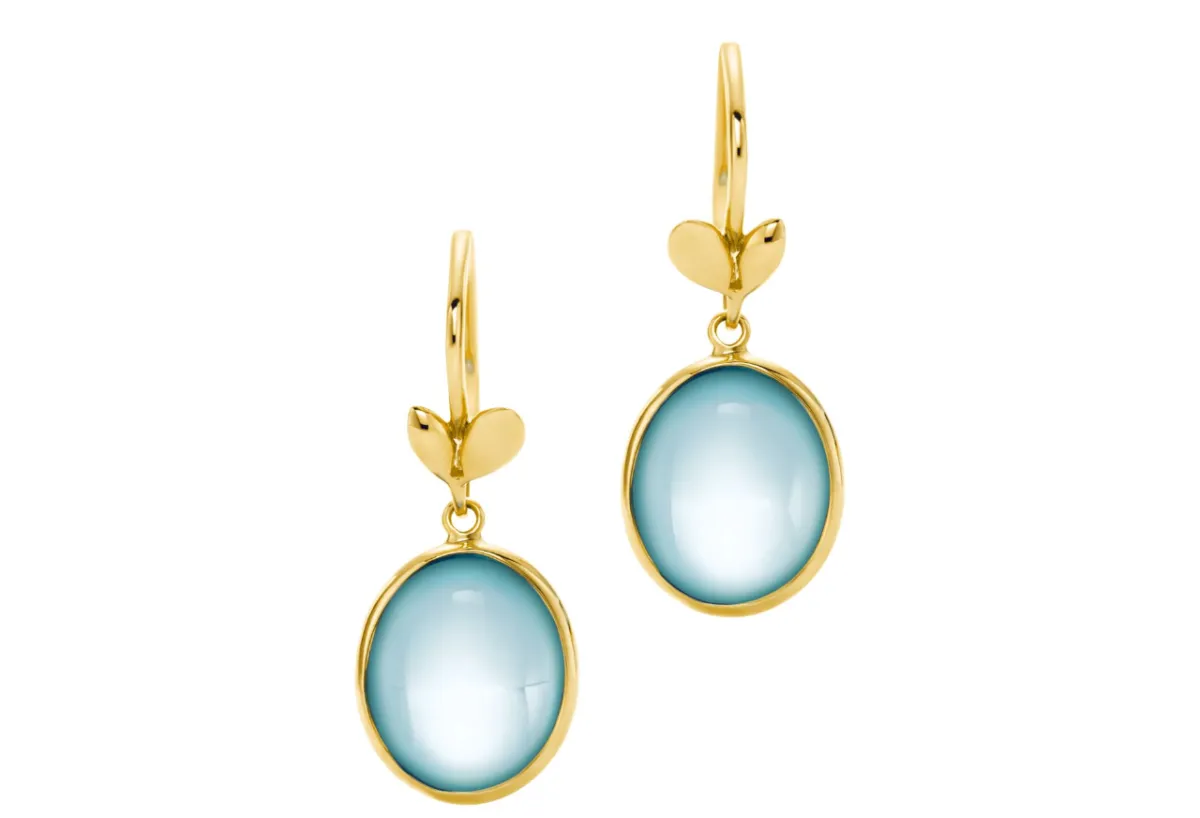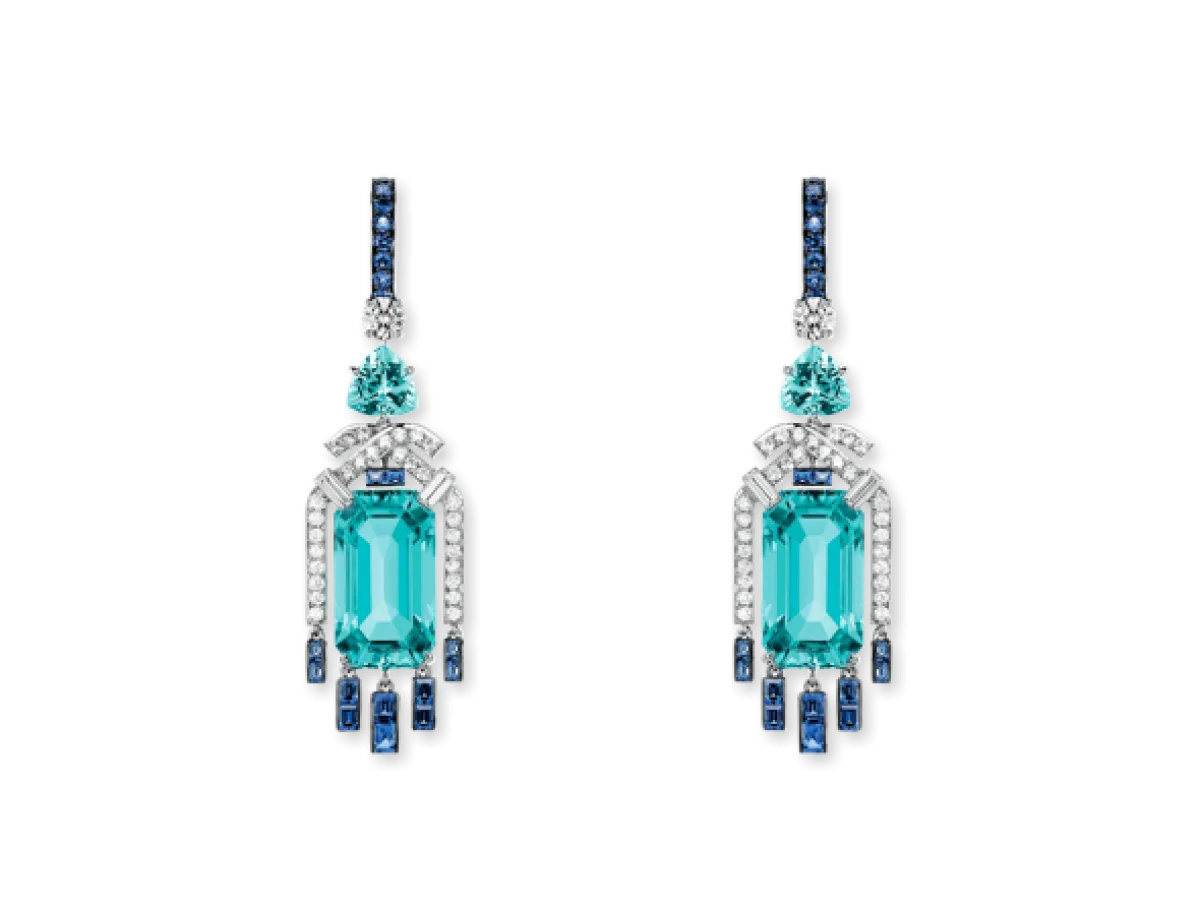 وقد قدّمت دور المجوهرات العالميّة، أقراطاً تميزت بلونها الأزرق الجذاب، حيث إنّ هذا اللون هو ما يميز اقتراب فصل الربيع وما يوحي به. ولذلك فقد قدّمت شوبارد chopard قرطين مصنوعين من الذهب الأبيض، بتصميم قلب تتوسطه حجر كبير من الفيروز الأزرق. أما ديور Dior فقد قدّمت تصميماً مميّزاً لقرطين، أحدهما طويل في أوله حبّة من الماس ونجد في نهايته حبّة من الفيروز، والأخر قصير مصنوع من الماس. كما رأينا أقراطاً مميزة قدّمتها دي غريزوغونو De Grisogono، حيث تميز أحدها باللون الأزرق الغامق بتصميم كرويّ جذاب، أمّا الأخر فكان تصميمه غريباً ومميّزاً، يليق بصاحبة الإطلالة الجريئة، حيث تداخل الذهب الأبيض مع الماس وأحجار الياقوت الأزرق. وتميزت أقراط تيفاني أند كو. Tiffany &co. بأنها صُنعت من الذهب الأصفر، وزُيّنت بحجر كبير من الفيروز الأزرق. غيرها من أهمّ دور المجوهرات العالميّة، مثل بوميلاتو pomellato، وبولغاري Bulagri، وشوميه Chaumet.