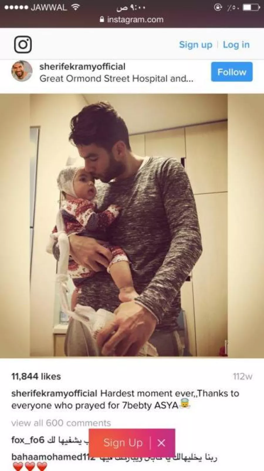 • أما الفنان الراحل نور الشريف فهو لم يخف مرض ابنته سارة وكان يطلب من الجمهور الدعاء لها بالشفاء دائماً.