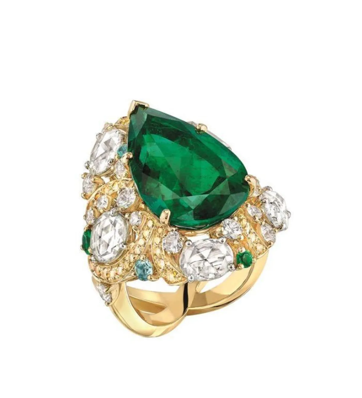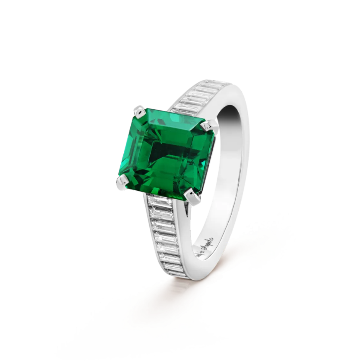 ومن أجمل الأحجار الكريمة التي تُزيّن وتُرصّع قطع المجوهرات بها، هو حجر الزمرّد، فهو يضفي بلونه الأخضر الجذاب، أناقة خاصة. ولذلك فقد قدّمت دور المجوهرات العالميّة، خواتم مرصّعة بأحجار من الزمرّد، كون الخواتم من القطع المفضلة لدى السيدات. فقد قدّمت شوميه chaumet خاتماً من الذهب الأبيض، مرصّعاً بحبيبات من الماس، ومزيّناً بحجر كبير من الزمرد. ورأينا خاتماً مصنوعاً من الذهب الأصفر ومزيّناً بحبيبات من الماس، مع حجرة كبيرة من الزمرد بتصميم إجاصة، قدّمته شانيل chanel. أمّا بولغاري Bulgari، فقد قدّمت خاتماً مصنوعاً من الذهب الوردي، ومرصّعاً بحجرين من الزمرد. ورأينا أحجارَ زمرد صغيرة تزين خاتمَ بوميلاتو pomellato، المصنوع من الذهب الأبيض. أمّا دي غريزوغونو De grisogono فقد قدّمت خاتماً بتصميم غريب وعصري من الذهب الأبيض، ومرصّعاً بحبيبات صغيرة من الماس والزمرد.