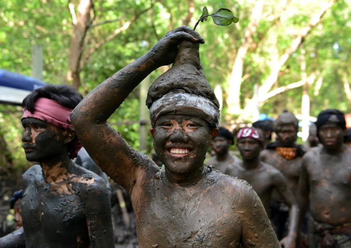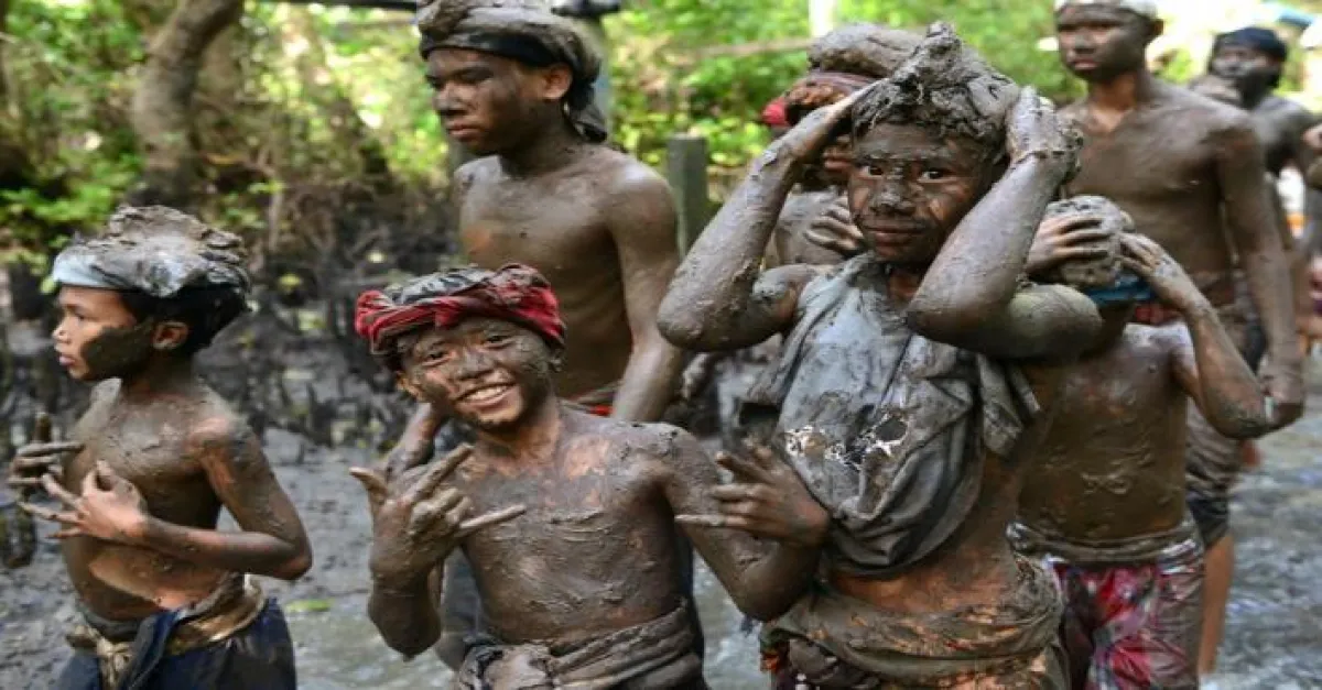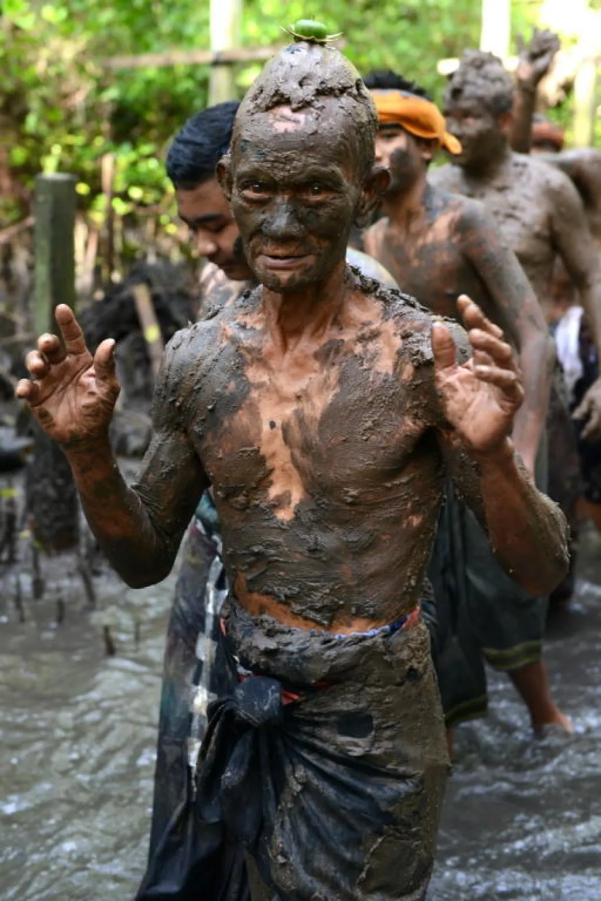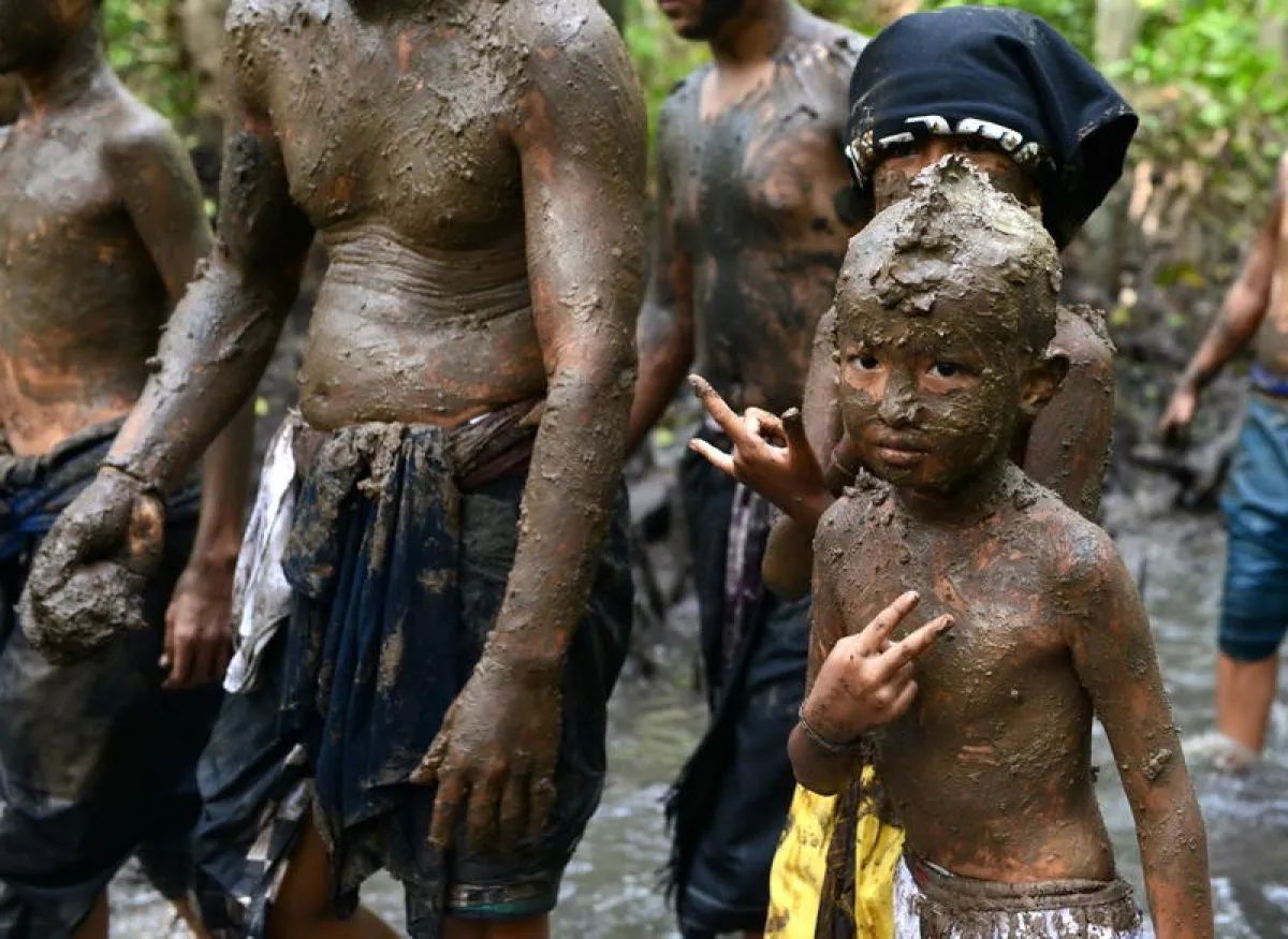 ويقوم أهالي قرية كيدونغنان قرب دنباسار على جزيرة بالي الإندونيسية بممارسة تقاليد تقضي بتغطية أجسامهم بالوحل.