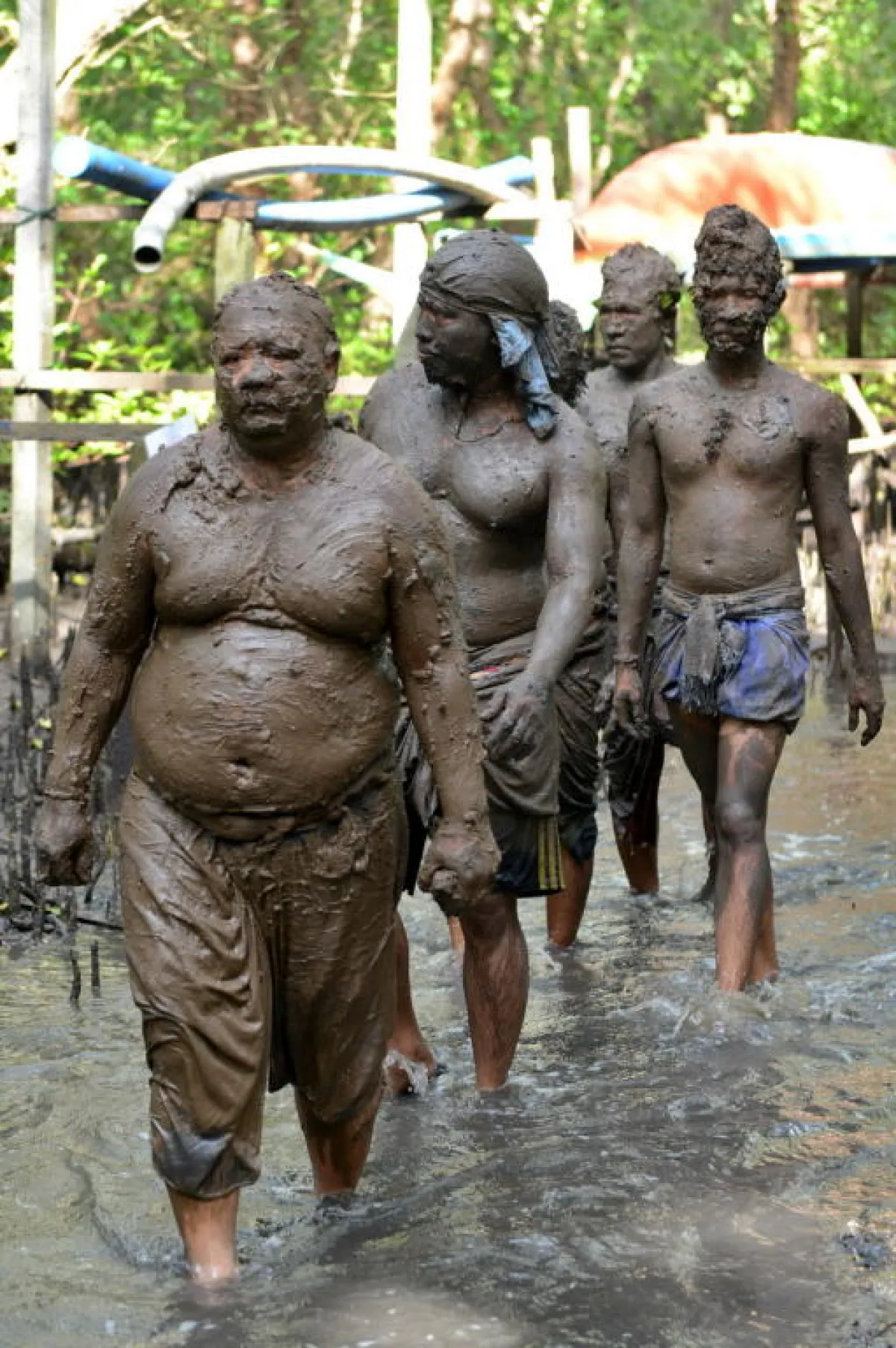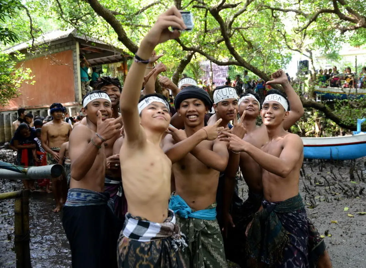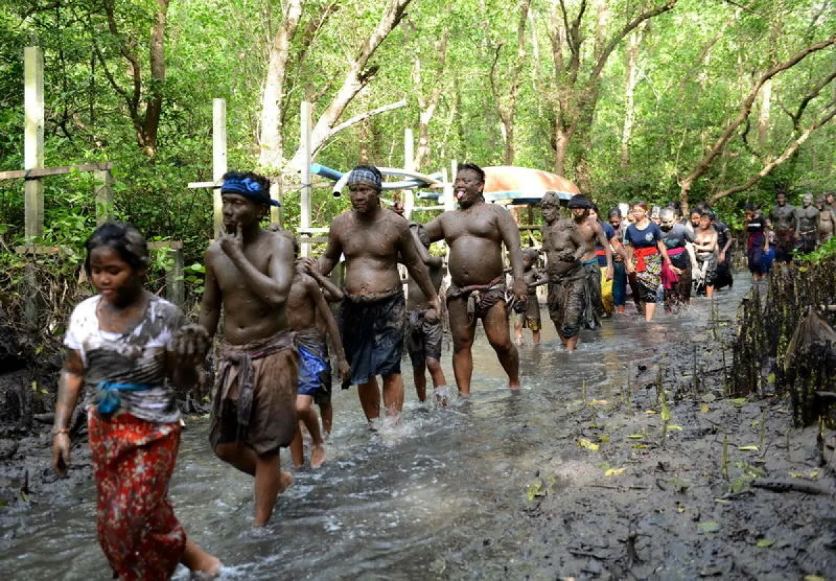ويقوم أهالي قرية كيدونغنان قرب دنباسار على جزيرة بالي الإندونيسية بممارسة تقاليد تقضي بتغطية أجسامهم بالوحل.