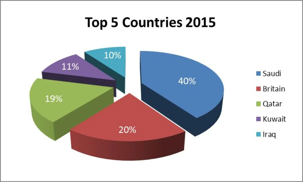 في المحصّلة ، فقد شكّل مرضى الشرق الأوسط وشمال أفريقيا 15٪ من إجماليّ أعداد المراجعين، وشكّلت دول مجلس التعاون الخليجي 11٪، وأوروبا 8٪، و 23٪ من البلدان الأخرى.