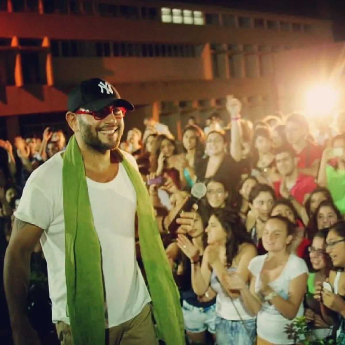 زياد برجي يرتدي قبعة بتصميم رياضي على المسرح