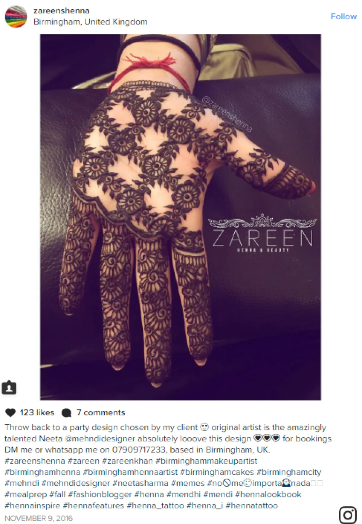 إذا وضعتِ هذه الحنّاء بنفسك، فقد تحتاجين لبعض الإلهام لتصاميمك، أدخلي على @sarashenaa للحصول على تصاميم حنّاء ناعمة، ستجدين أنّ "سارة" هي أولى النساء اللواتي استخدمنَ الحنّاء البيضاء وفوق البنفسجيّة في جلسات التصوير الخاصة بها.