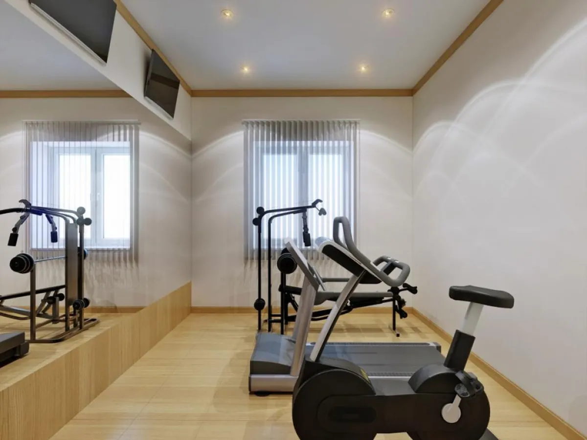 * تُثبّت المرايا قبالة المعدات في مساحة الرياضة وتُحدّد خصوصيّة الأخيرة بإكساء الأرضيّة بألواح الـ"باركيه".