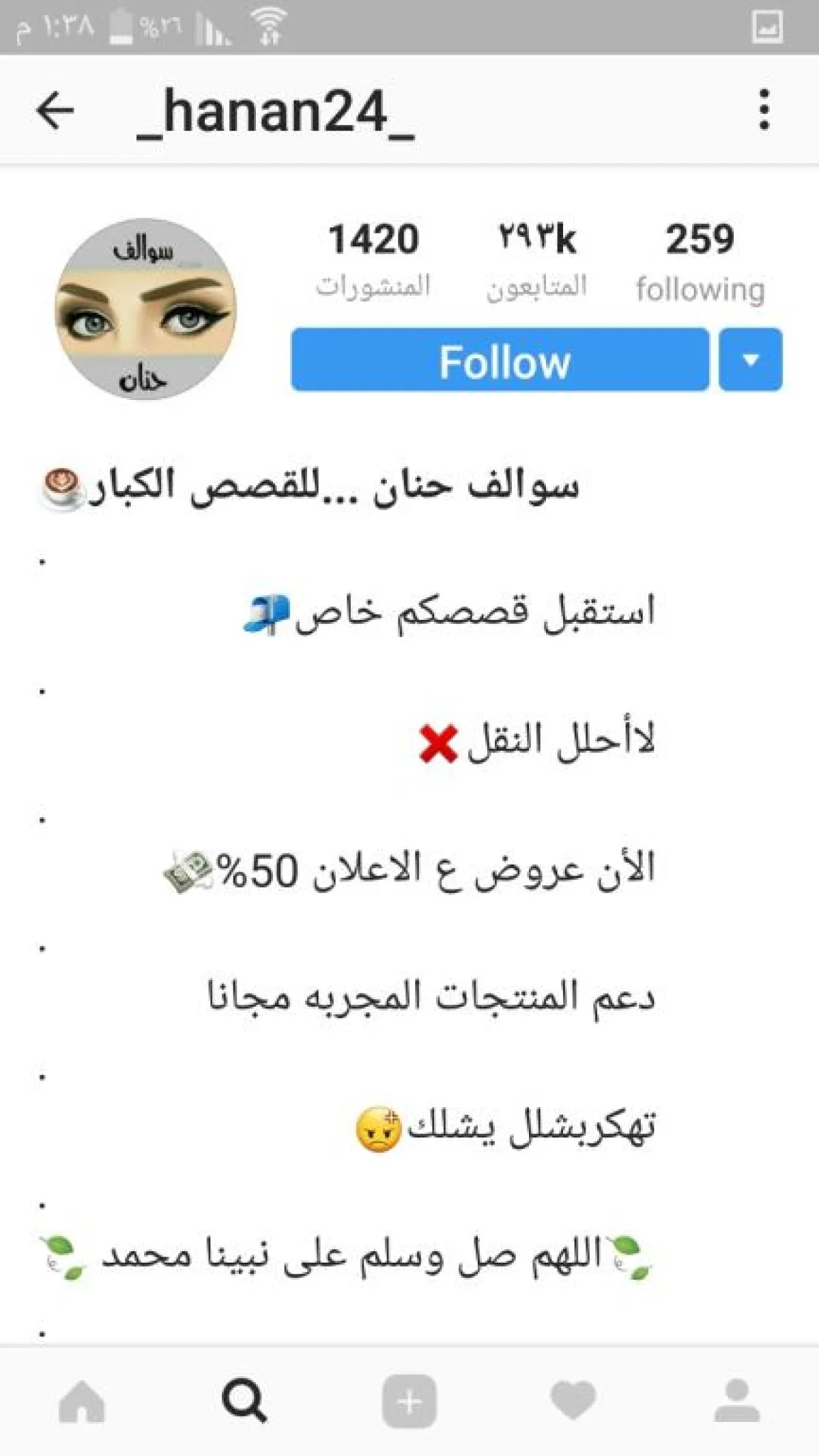 وتتلقى حنان ذات الخمسة والعشرين عاماً ربة «منزل» في اليوم قرابة 20 قصة، ولكنها لا تقوم بطرحها جميعاً حيث تقوم باختيار المناسب والذي يستحق القراءة والمتابعة، كما تسعى لتطوير حسابها ليصبح حساباً عالمياً، خاصة وأن لديها متابعين من مختلف أنحاء العالم العربي.