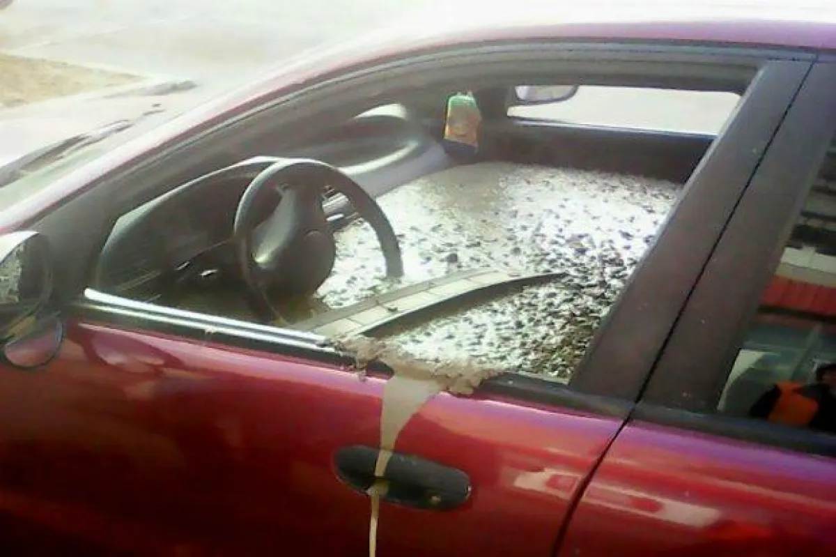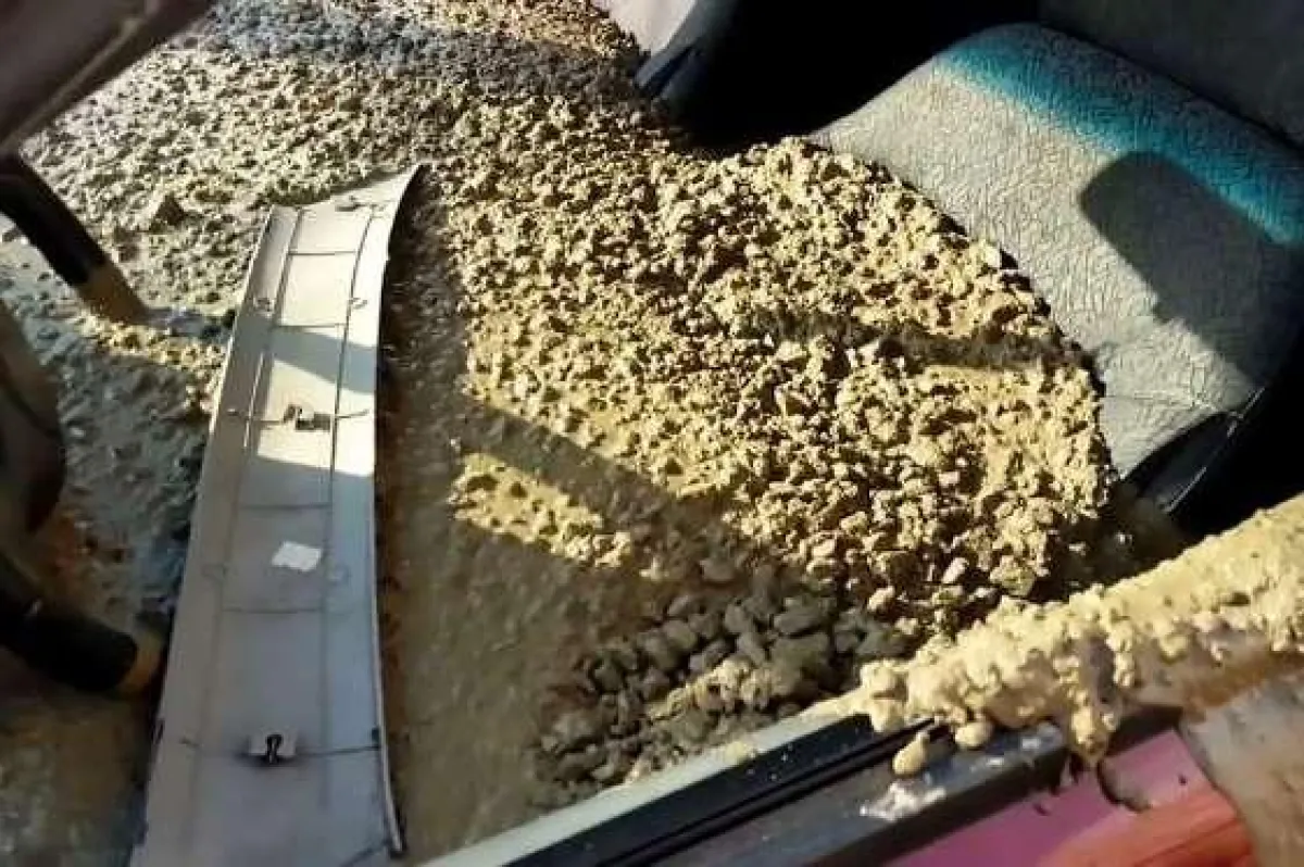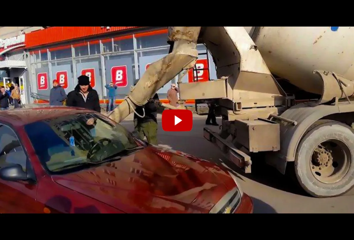 لقد استأجر الزوج شاحنة بناء قلابة ملأها بمادة الإسمنت السائل (خرسانة) وتوجه بها إلى حيث تقف سيارة زوجته الحمراء، ثم ترجل من الشاحنة وأخرج خرطومًا معدنيًا أدخل أحد طرفيه إلى نافذة السيارة الأمامية القريبة من مقعد السياقة وثبت الطرف الآخر داخل حمولة الشاحنة، ثم أعطى أوامره للسائق كي يبدأ بصب الإسمنت الذي تدفق مثل الشلال داخل السيارة ووصل إلى مستوى النوافذ. وكان يمكن أن يهرب الزوج بفعلته ويتوارى عن الأنظار، لولا وجود شهود عيان صوروا الحادثة ونشروها على مواقع التواصل الاجتماعي وفضحوا الرجل.