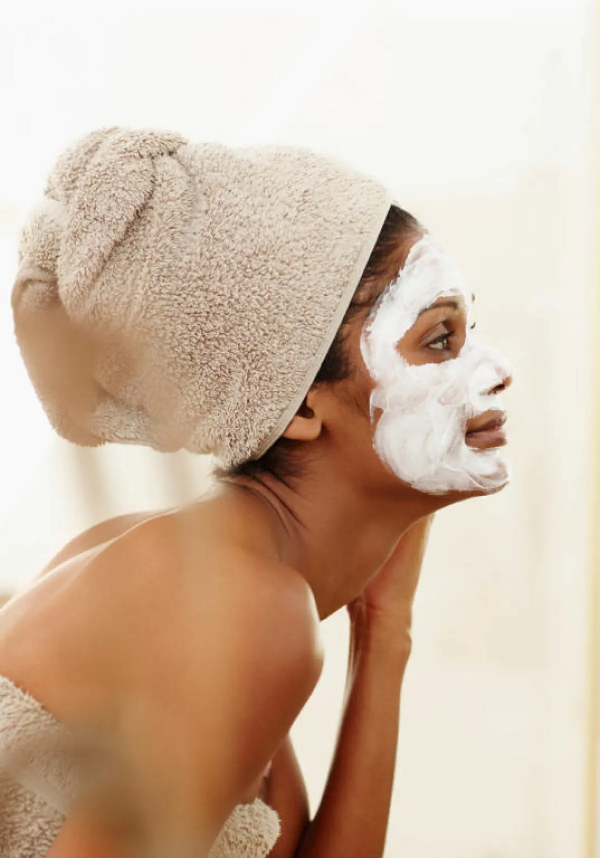 •ضعي القناع على بشرتك، واتركيه حتى يجفّ، ثم اغسلي بشرتك بالماء الفاتر.