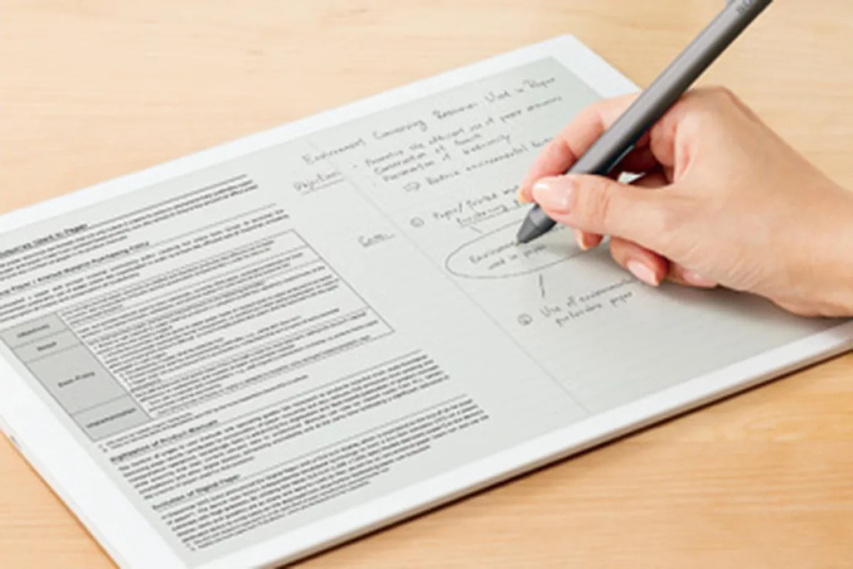ويطلق على الجهاز اسم "DPT-RP 1"، ويملك شاشة حبر بحجم 13.3، إذ يمكن الكتابة عليه أو الرسم باستخدام قلم يأتي معه، ويتميز بأنه يحفظ وينقل أي شي يكتب على الشاشة إلى جهاز آخر، وخلال التطبيق يمكن للمستخدمين تحميل الوثائق والنماذج والرسوم البيانية والعروض التقديمية على الجهاز اللوحي، وذلك وفقاً لموقع " ibtimes " التقني.