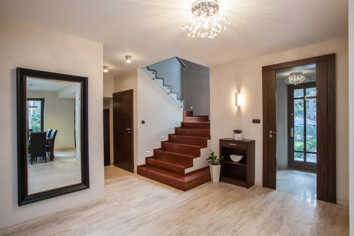 | تُخصّص مساحة كافية للمدخل، بالاتساق مع مساحة المنزل، وذلك عندما يكون المبنى قيد التنفيذ. إذ من غير المُستحب أن تكون مساحة المنزل كبيرة، وتلك المخصّصة للمدخل صغيرة. وإن كانت مساحة المدخل ضيّقة، فهذا لا يعني أنّه لا يمكن إضافة لمسات جماليّة إليها، كاستخدام مرآة فخمة أو سجّادة أنيقة للتزيين. ومن أفكار التزيين أيضًا، سواء كان كبيرًا أو صغيرًا: وضع حوض من الزرع أمامه، مع تحف خفيفة، أو حتى عربة مع أصص للزهور. أو إضافة كرسي مبتكر التصميم أو مجموعة من حقائب التخزين.