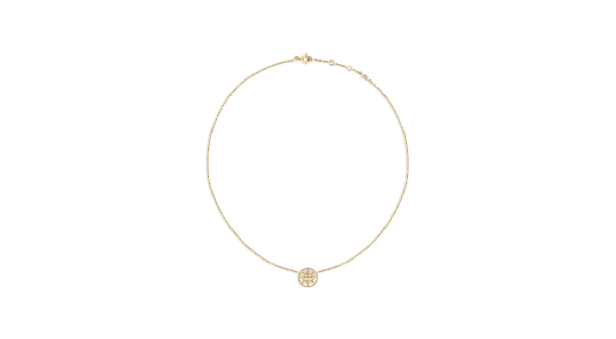 أما دار ديور Dior العريقة، فقد قدّمت ضمن خطّها من المجوهرات الراقية ديور فاين جوليري Dior Fine Jewellery مجموعة روز دي فان Rose des Vents والتي حصدت نجاحاً واسعاً، وقد اخترنا منها هذا العقد المصنوع من الذهب الأصفر ذات التصميم الناعم والهادئ.