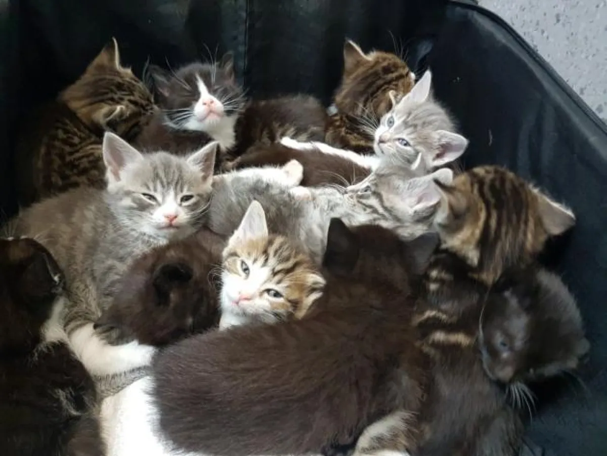 عثرت إحدى الممرضات البيطريات قرب منزلها في شرق لندن على حقيبة سفر كبيرة، وقد حشرت داخلها 15 قطة صغيرة بأعمارٍ تتراوح من ثلاثة إلى خمسة أسابيع، وقد أحدثت عدة ثقوب هوائية على سطح الحقيبة وجوانبها من أجل التنفس وخوفاً من اختناق وموت هذه القطط الصغيرة كما أن من رماها قد تعمد اختيار مكانٍ قرب بيت الممرضة من أجل أن يضمن وجود من يعتني بها.