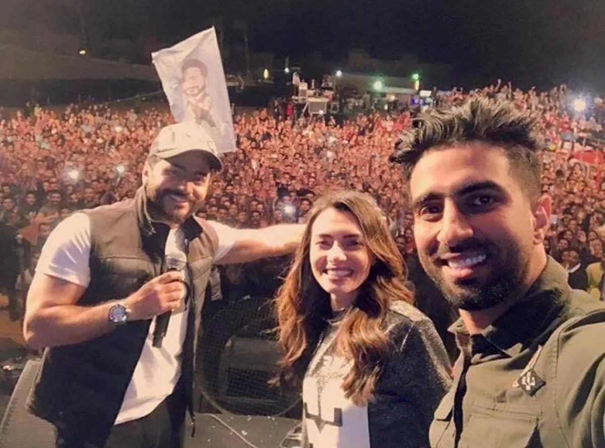 كارمن حرصت على تلبية دعوة تامر والظهور معه، رداً لمجاملته بالحضور لحفل زفافها وإحيائه متطوعاً، برفقة المطربة المغربية سميرة سعيد، وظل زوجها مصطفى جاد واقفاً بصحبة تامر وكارمن على المسرح ولم يغادره إلا بعد انتهاء فقرة محبوبة العرب.