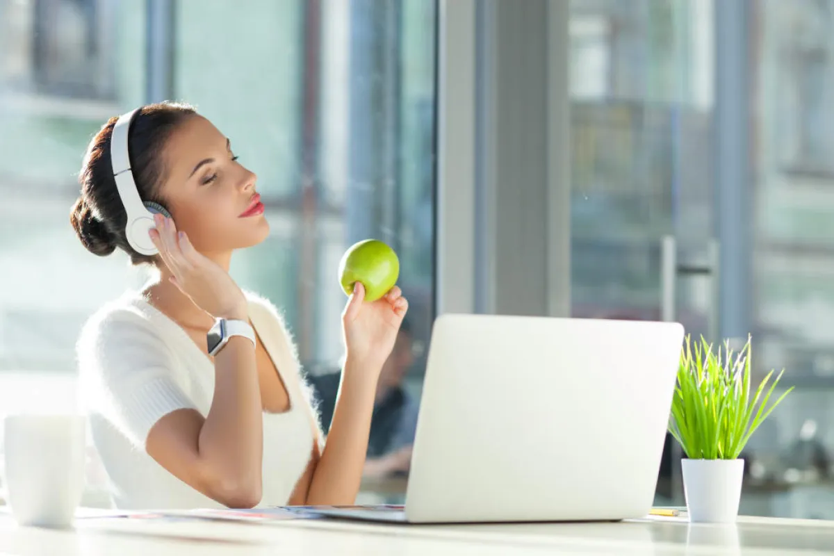 | الاستراحة لعشرين دقيقة كلّ ساعتين، أثناء العمل، مع تناول ثمرة من الفاكهة للتقليل من عوارض الأكل الانفعالي.