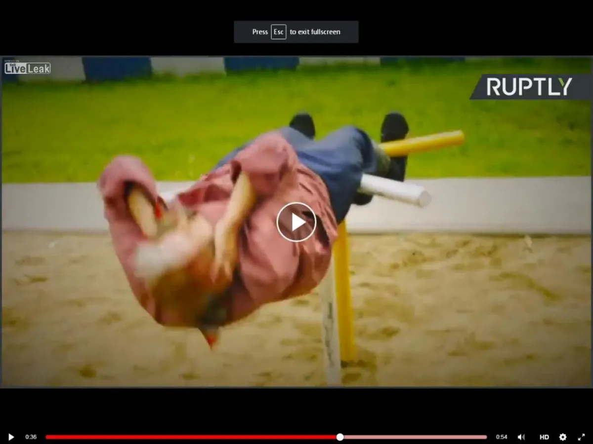 وبحسب موقع «لايف ليك» الذي نشر الفيديو، تظهر فيه سيدة تقوم بمجموعة من التمارين القاسية داخل صالات الجيم، وفى الهواء الطلق بمدينة كالينجراد الروسية، وهي ترتدي الملابس النمطية الروسية.