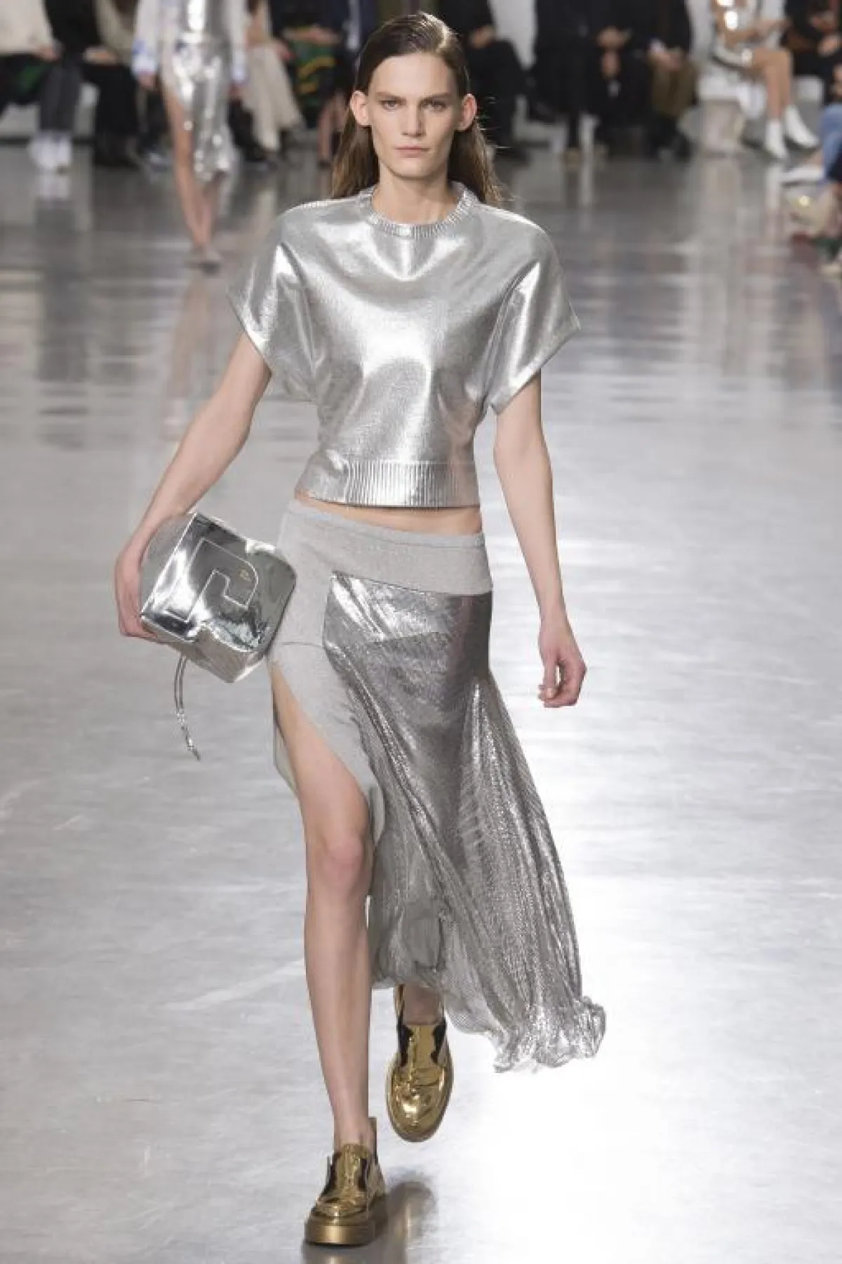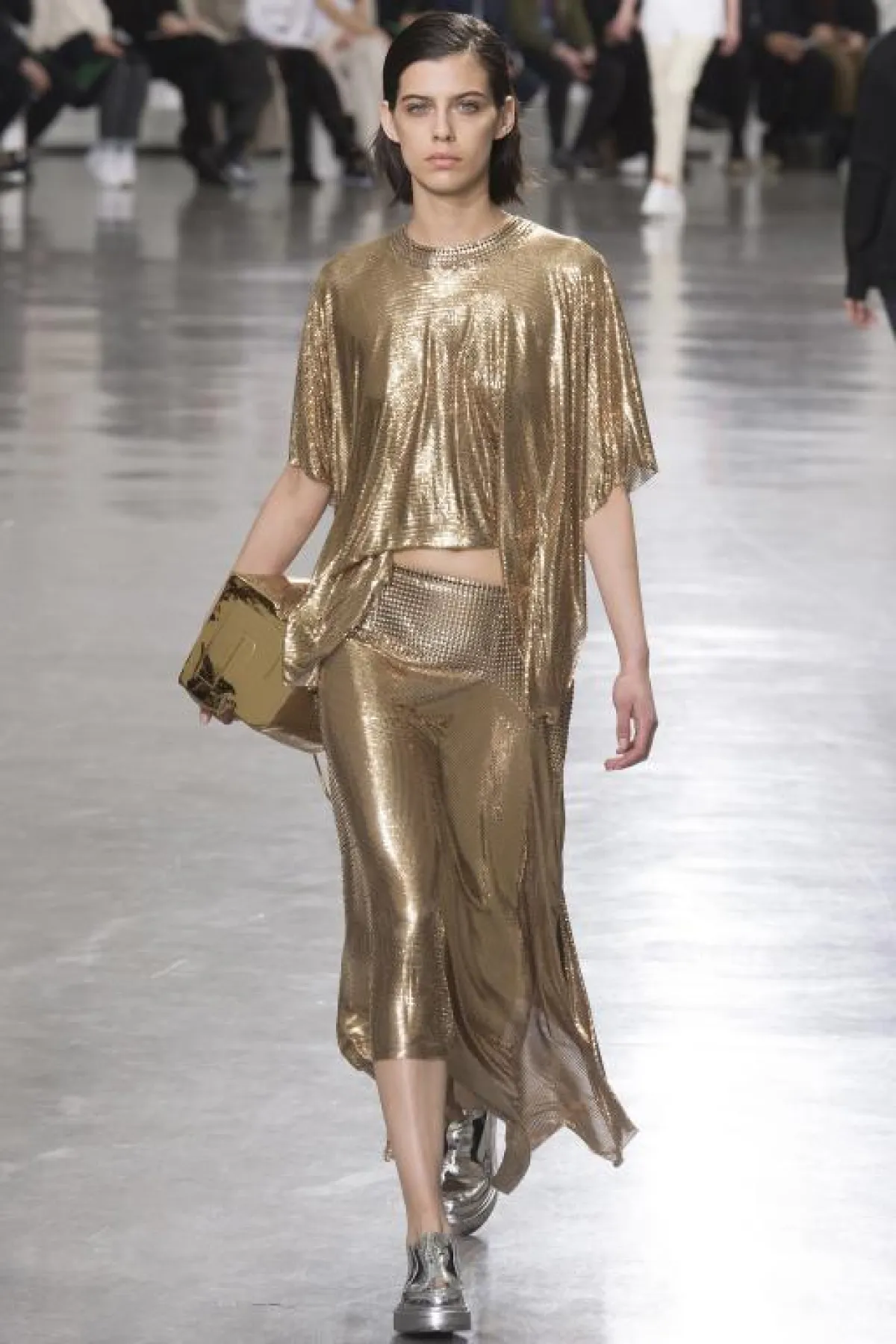 تنورة وكنزة باللون المعدني من Paco Rabanne