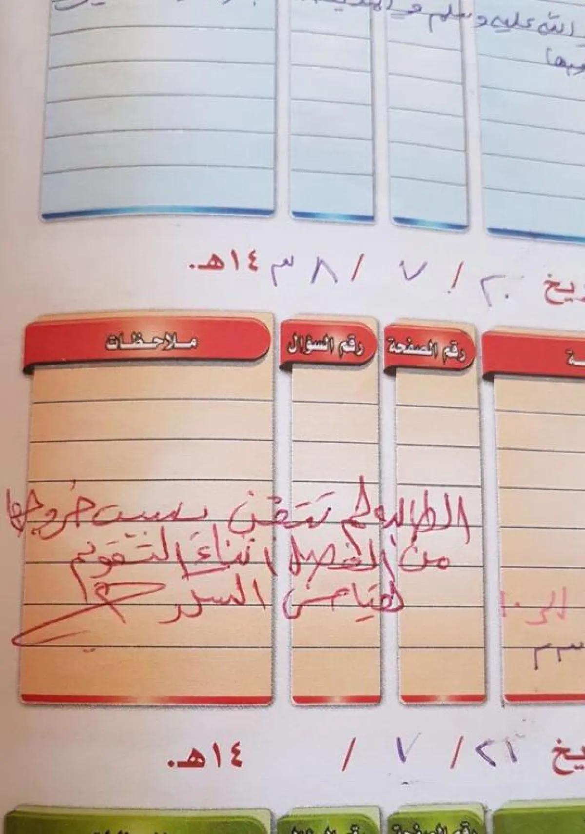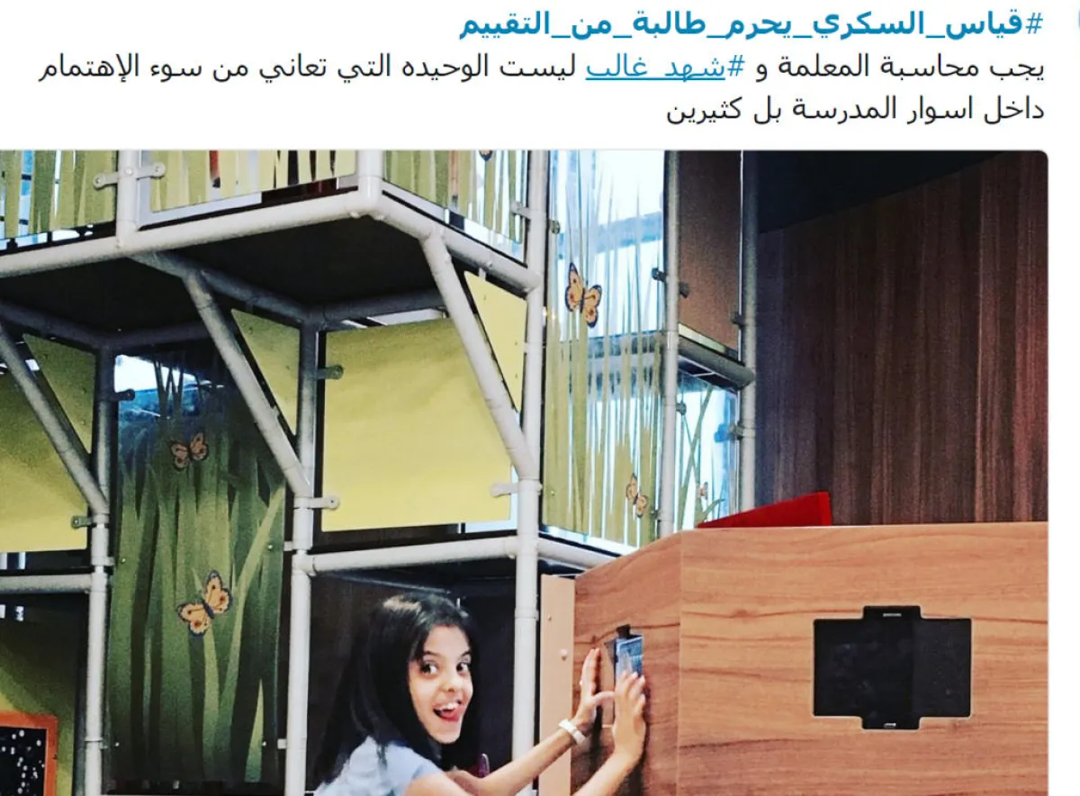 جاء ذلك بعد نشر غالب السليمي، والد الطالبة شهد، صورة من تقرير واجبات ابنته، بيَّنت فيه المعلمة سر حرمانها الطفلة من درجاتها، حيث كتبت بخط يدها: "الطالبة لم تتقن المطلوب بسبب خروجها من الفصل أثناء التقويم لقياس السكر".