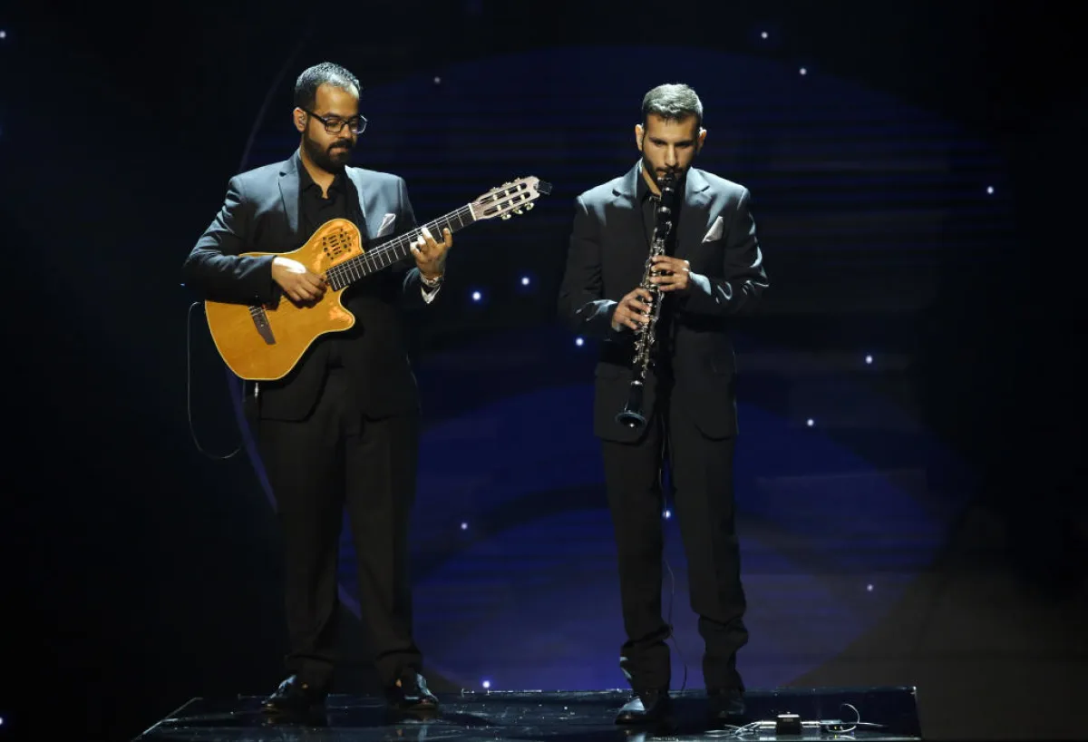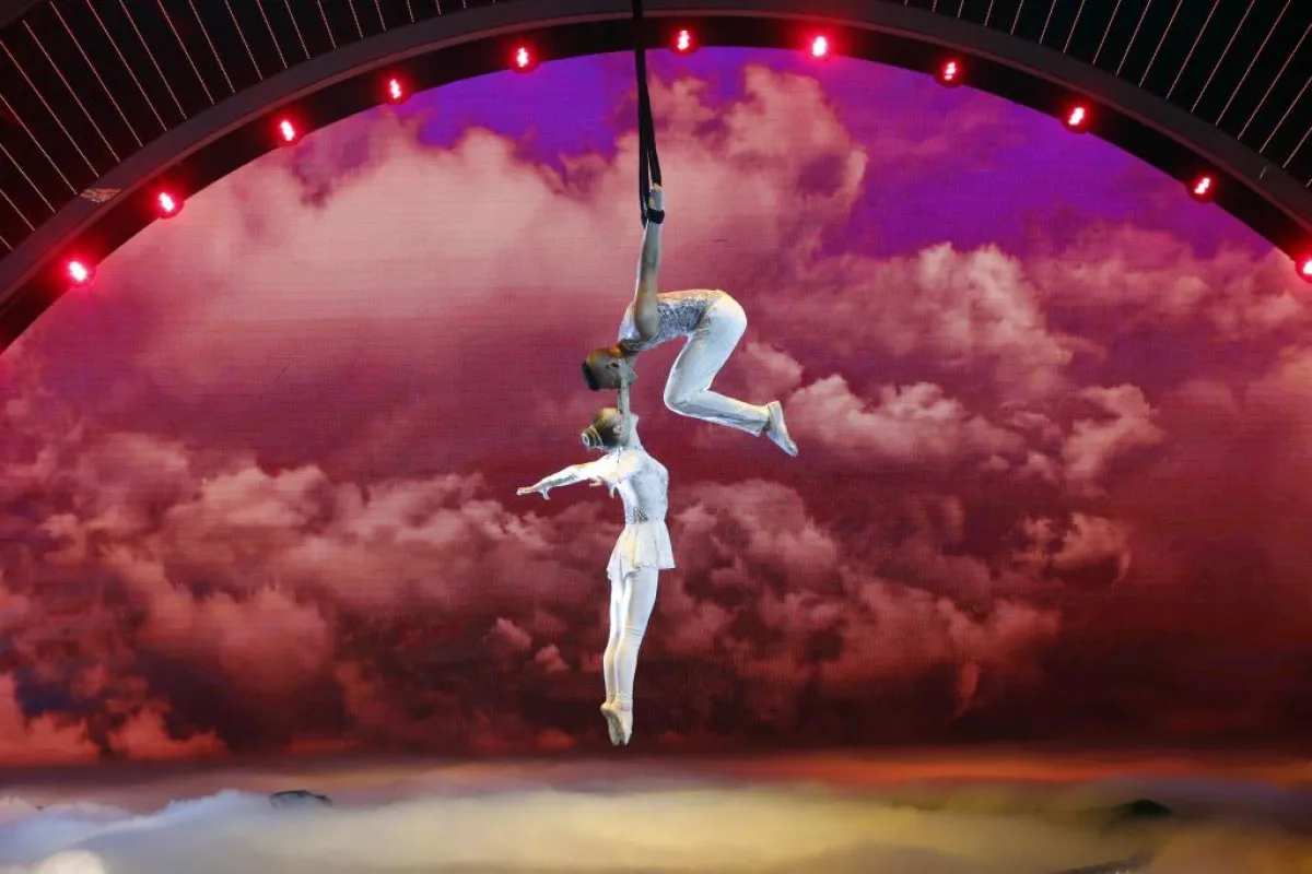 بعدها أطلّ الزوجان العاشقان أيمن من مصر وشريكته كسينيا، لتقديم لوحة فنية أبرزت قصة حبهما في عرض راقص متميز.