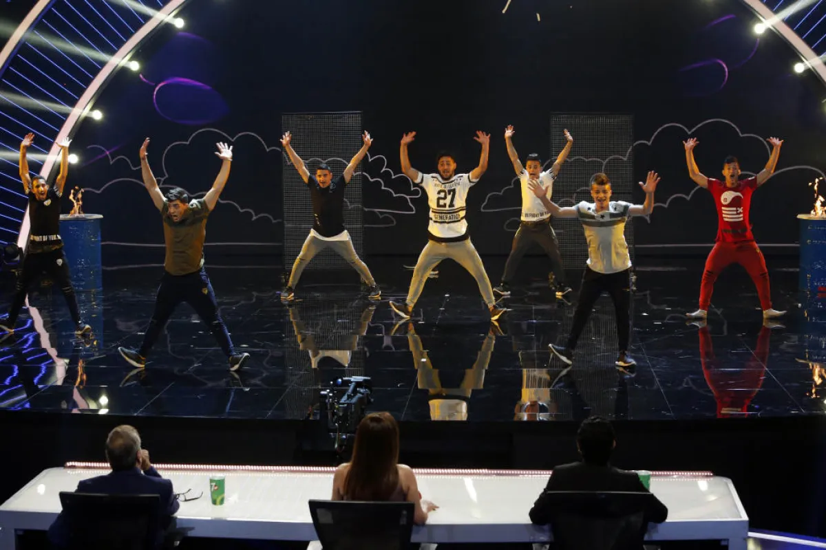أما فريق Mustafa Danguir من المغرب، فلم يظهر على مسرح البرنامج، بل وضعت شاشة ضخمة فيما قدّم الشبان عرضهم المليء بالمخاطرة والتشويق من أمام الاستديو.