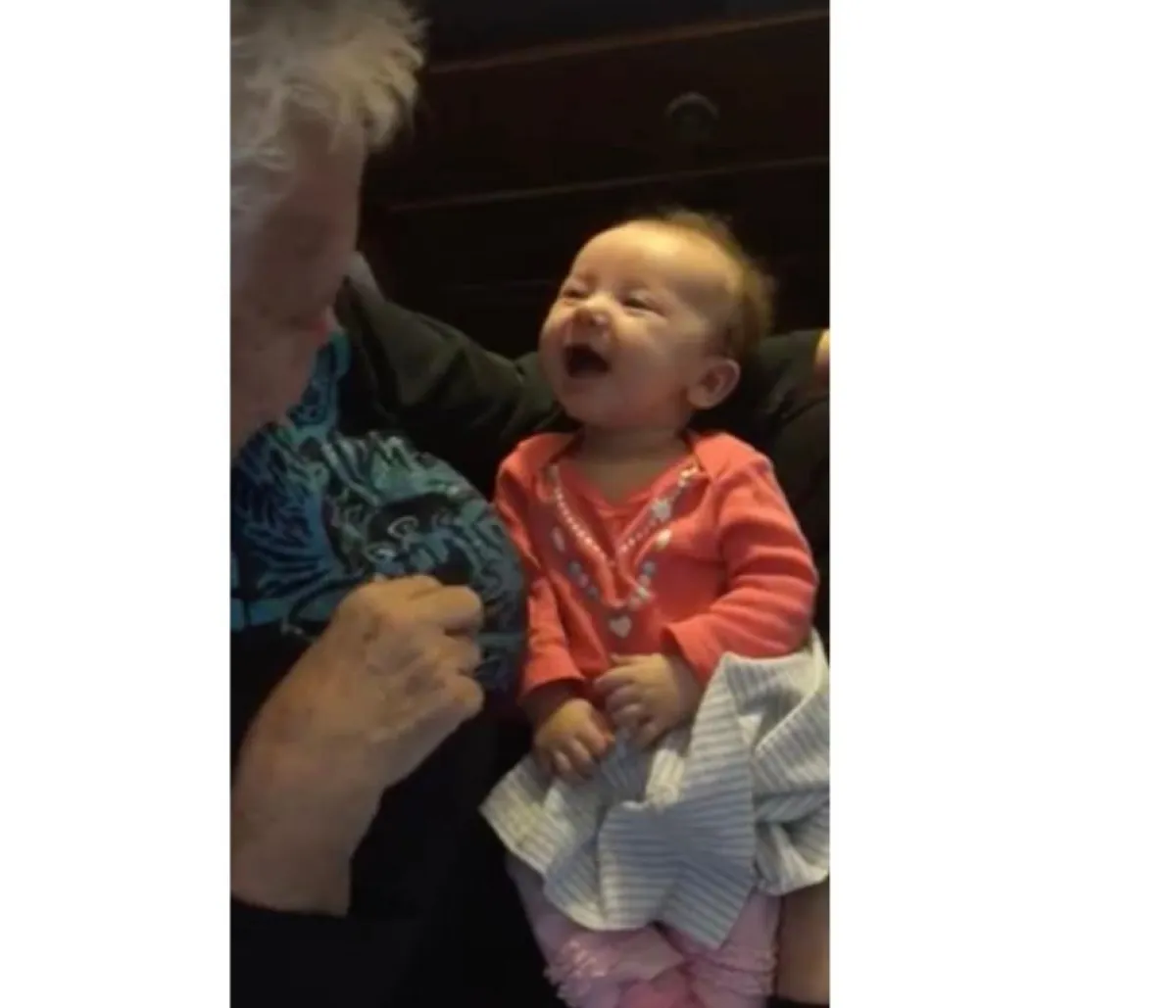 وتظهر الجدّة باميلا مكماهون Pamela McMahon وهي تشير لحفيدتها ذات التسعة أسابيع آريا بيل Aria Belle، والتي لمعت عيناها حماساً بفعل دروس الجدّة.