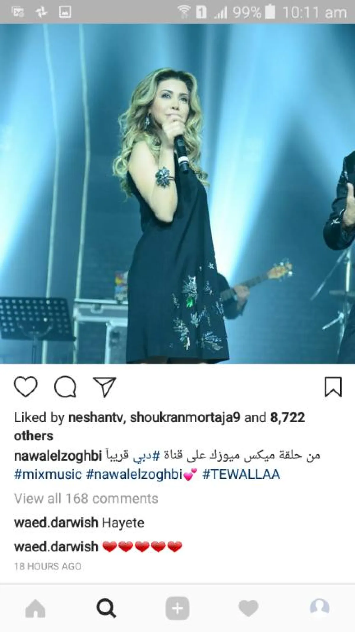 لم يكد يمر ساعات قليلة على اعتذار الإعلامي نيشان عن محاورة الفنانة أحلام، في الجلسة التي شاركت فيها في "الملتقى الإعلامي العربي 14 "، حتى علّق بـ "لايك " على صورة نشرتها الفنانة نوال الزغبي، للترويج لحلقتها من برنامج "ميكس ميوزيك" الذي عرض مساء الأحد على قناة "دبي".