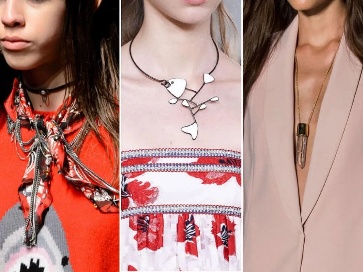 وقد برزت موضة القلادات الطويلة ضمن عروض مجموعات أشهر دور الأزياء العالمية لربيع 2017، مثل كلوي، جيفنشي، لانفين، برادا، وانغ، ألكسندر وشانيل... فجاءت أشكالها متنوعة تراوحت بين المزينة بالأحجارالمختلفة من حيث الحجم والشكل واللون، من بينها العقيق وحجر الأوبال، وبين تلك المصنوعة من الذهب والمزينة بالمفاتيح الذهبية والجلدية، وصولاً الى القلادات المصنوعة من الخرز بزخارف ونقوش تقليدية وعصرية، كما تنوعت بين الذهبية والفضية والنحاسية. كذلك، أتت بخامات مميزة ولافتة لتمنح إطلالة المرأة رونقاً وتألقاً وجاذبية لا مثيل لها، مازجةً بين العصرية والكلاسيكية والكاجوال.