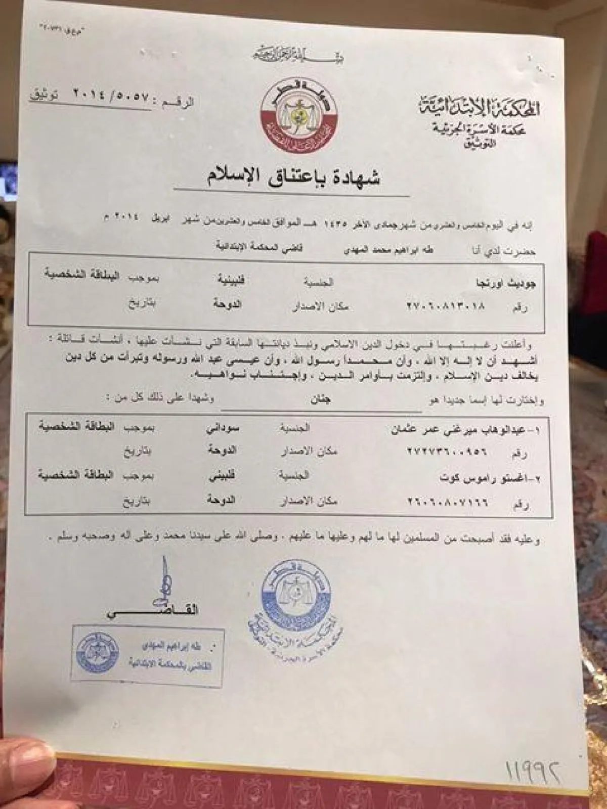 أحلام تنشر وثيقة اعتناق مدبّرة منزلها للدين الإسلامي