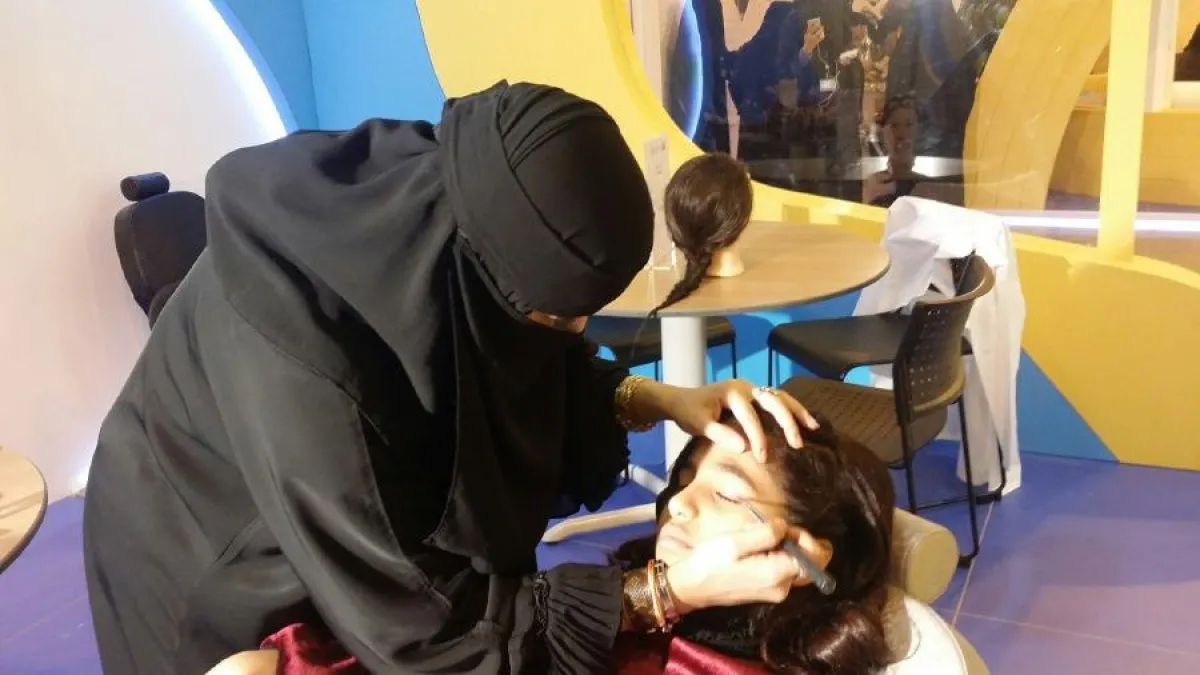 مدربة تعلم إحدى الفتيات مهنة الماكياج