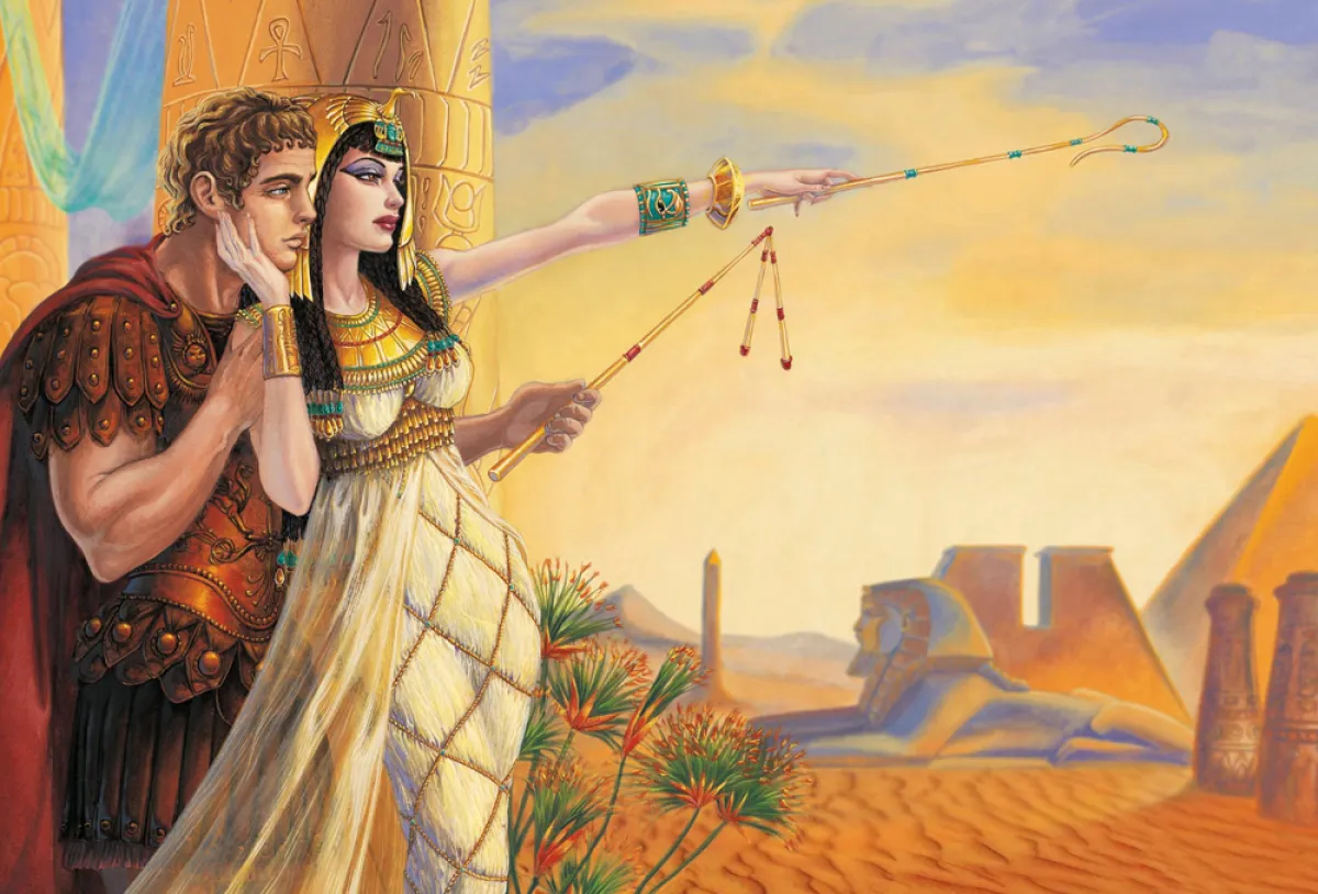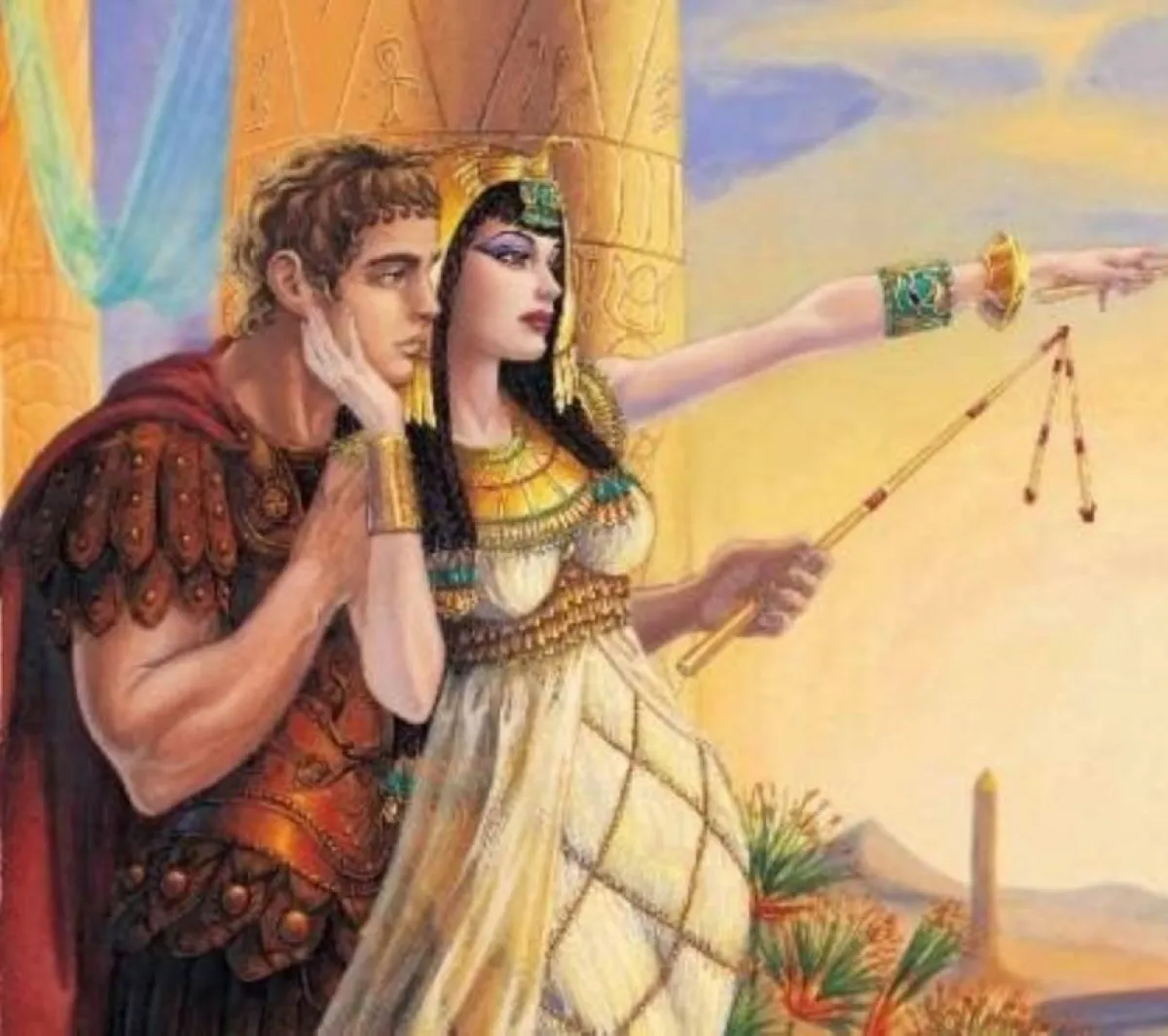 - كليوباترا ومارك انطونيو: تعتبر قصة حبهما أشهر قصة حبٍّ ذكرها التاريخ فقد وقعا في الحبِّ من أول نظرة، لكن علاقتهما أثارت غضب الرومان، حيث كان أنطونيو قائد الرومان، وخشوا أن تزيد قوة مصر مع وجود هذه العلاقة، لكن رغم كل التهديدات، تزوجا وحين جاء يوم كان انطونيو يخوض فيه حرباً ضد الرومان، تلقى شائعات كاذبة بأن كليوباترا ماتت، فانتحر بسيفه، وعندما عرفت كليوباترا حزنت، ولم تحتمل فانتحرت هي الأخرى بالسم، وجسدها الكاتب الإنجليزي شكسبير في مسرحيَّة مأساوية بعنوان (انطونيو وكليوباترا).