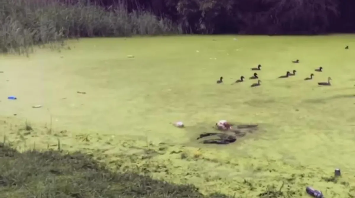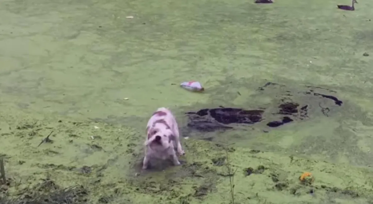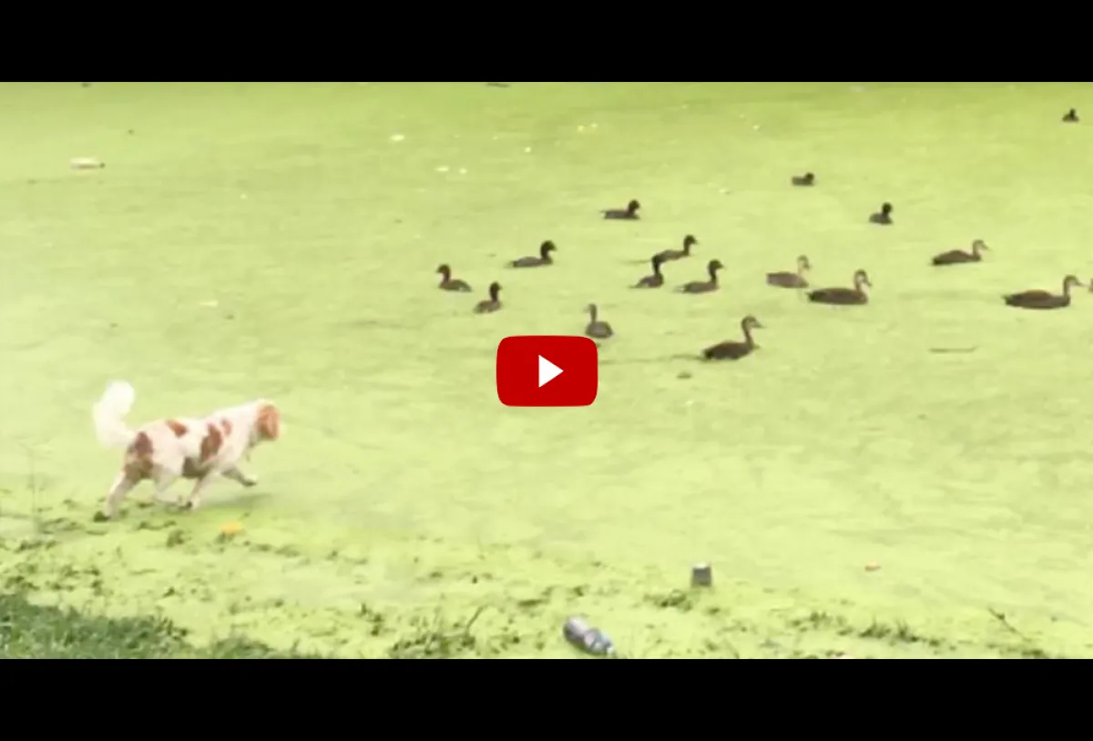 نشر موقع «لايف ليك» فيديو طريفًا لكلب تعرض إلى مفاجئة قاسية، عندما شاهد سربًا من البط فجري مسرعًا للانقضاض عليه، ولكنه وجد نفسه وسط بركة من الماء كان يعتقد أنها أرض، بعد أن غطت الطحالب الخضراء البحيرة، ليسقط الكلب فى الماء وتنتهي آماله في الانقضاض على البط، وأذيال الفشل يجرها وراءه بعد أن ناداه صاحبه.