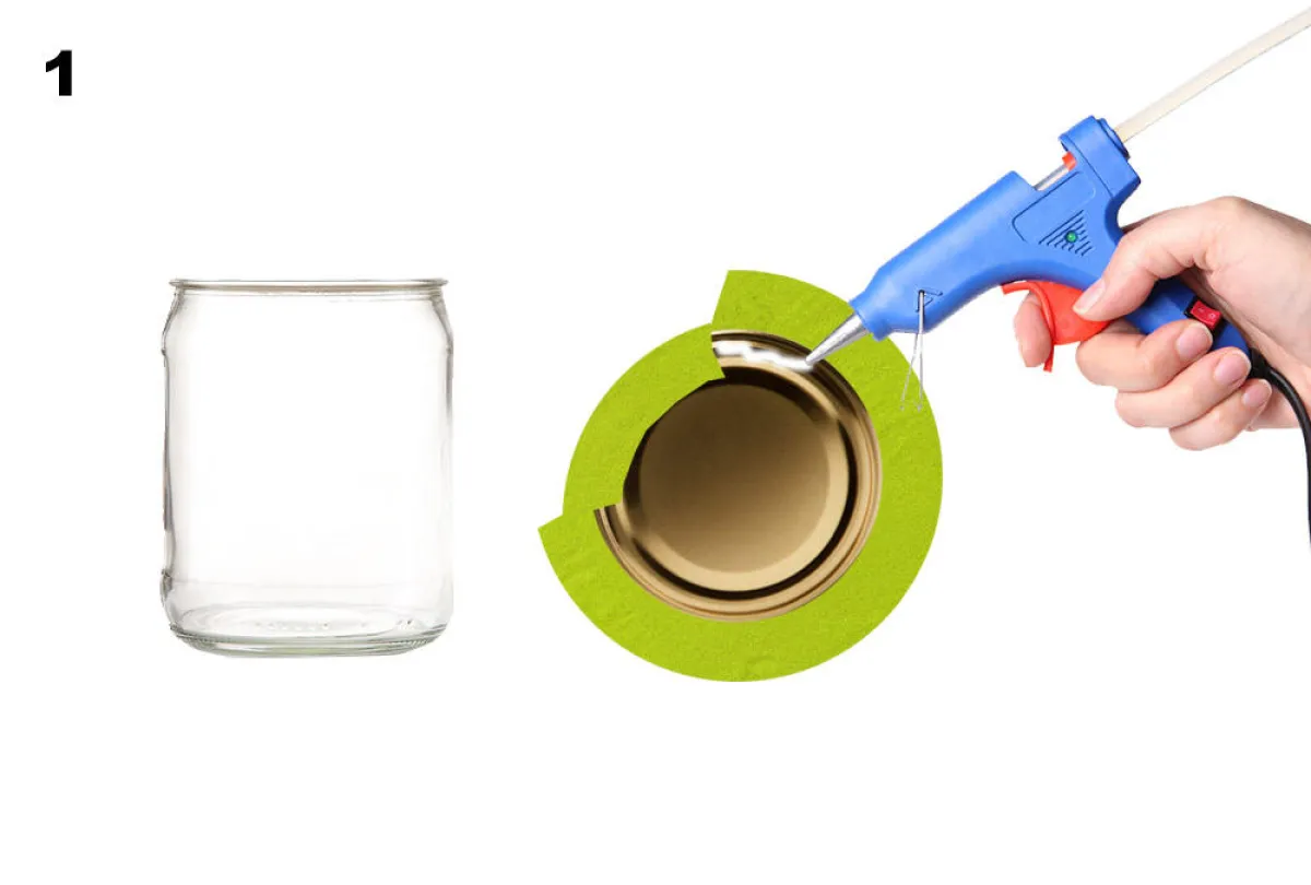1. يُفرّغ غطاء برطمان زجاج، ويُغلّف بقطعة من القماش.