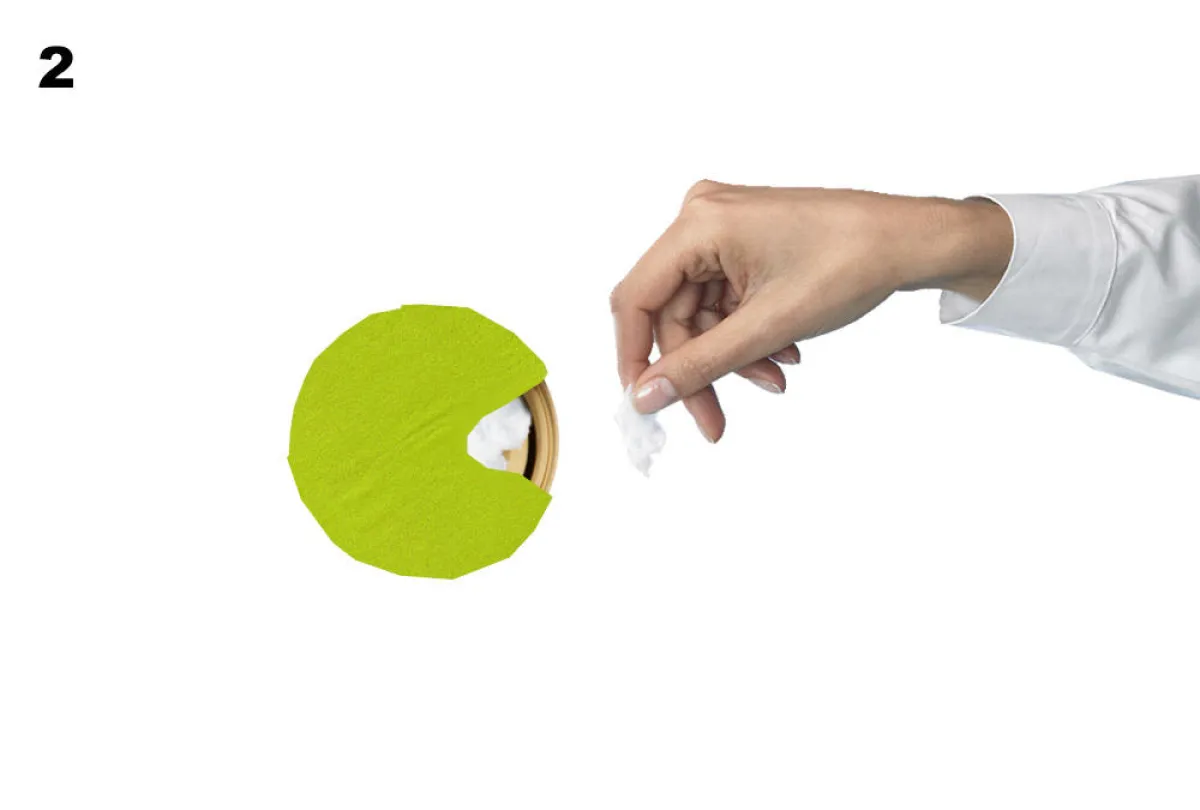 2. يُحشى القماش بالقطن، ويُعاد إلى مكانه على سطح البرطمان.