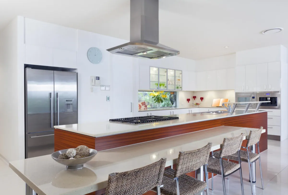 أصبح استحضار "جزيرة/ كاونتر" رائجًا في المطابخ الـ"مودرن"، نظرًا إلى وظيفتها العمليَّة وشكلها الجميل. وفي هذا الإطار، تقول مهندسة الديكور ديالا غمراوي، إن "أشكال "الكاونتر في المطبخ الـ"مودرن" تُراوح بين المستطيل ونصف الدائري والمربَّع"، لافتة إلى أن "الشكل المستطيل رائج، ولو أن الشكل يرتبط عمومًا بمساحة المطبخ، مع مراعاة إذا كان الأخير يقبع في مساحة مغلقة أو ينفتح على غرفة ثانية". وتشرح الخبيرة أن "الجزيرة المربعة تُمثل الخيار الأنسب للمطابخ الضيّقة، وهي تأتي ثابتة أو متحركة أي مزودة بدواليب".