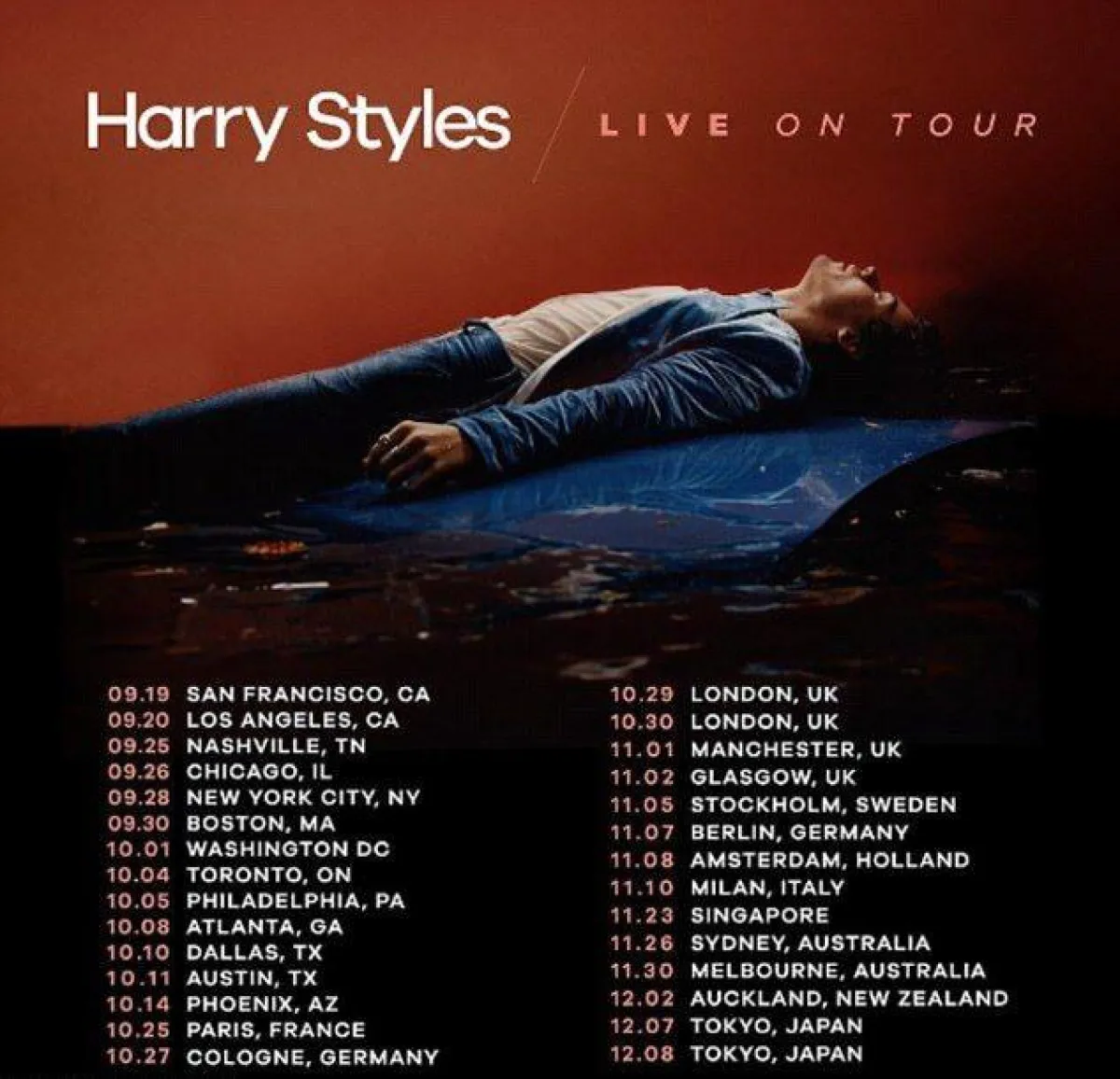 أعلن النجم البريطاني الشهير هاري ستايلز Harry Styles، عن مواعيد جولته الغنائية حول العالم للترويج لألبومه الجديد، مؤكداً أنه سيزور 13 مدينة في أمريكا الشمالية قبل التوجه إلى أوروبا.
