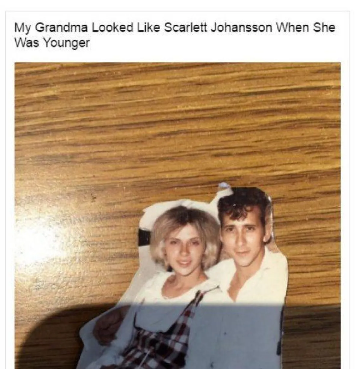 اكتشفت النجمة العالمية سكارليت جوهانسون Scarlett Johansson أن لها شبيهة، وذلك بعد أن نشر مستخدم لموقع Reddit صورة لجدته في شبابها، تناقلها مستخدمو الموقع عبر وسائل التواصل الإجتماعي حتى وصلت قصة الصورة إلى الممثلة الشهيرة.