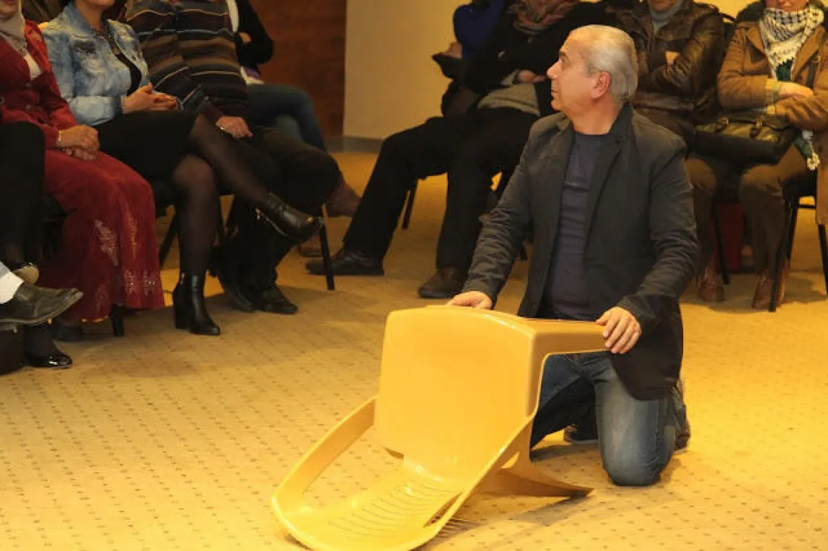 كما اعتمد غنام في العرض، أسلوب الممثل الحكواتي، الذي يحكي الأحداث التي عايشها، والآمال التي يتمناها في مستقبله القريب والبعيد، بصورة اقتربت إلى حد كبير من عرضه قبل الأخير "عائد إلى حيفا"، الذي صاغه عن رواية الأديب الفلسطيني غسان كنفاني.