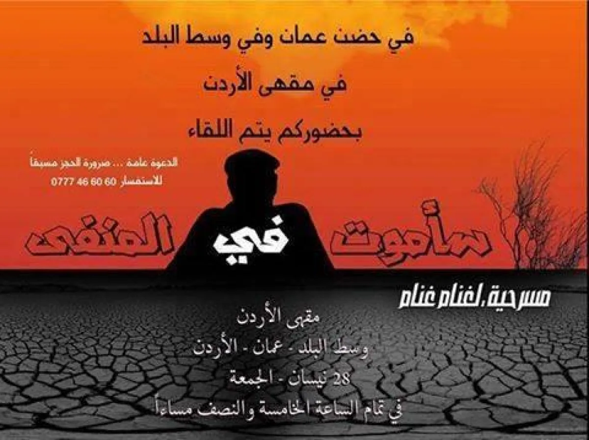 قدم المخرج والفنان الفلسطيني غنام غنام، عرضه المسرحي الجديد مونودراما "سأموت في المنفى"، وذلك في مقهى الأردن الكائن في وسط البلد، في العاصمة الأردنية عمان.