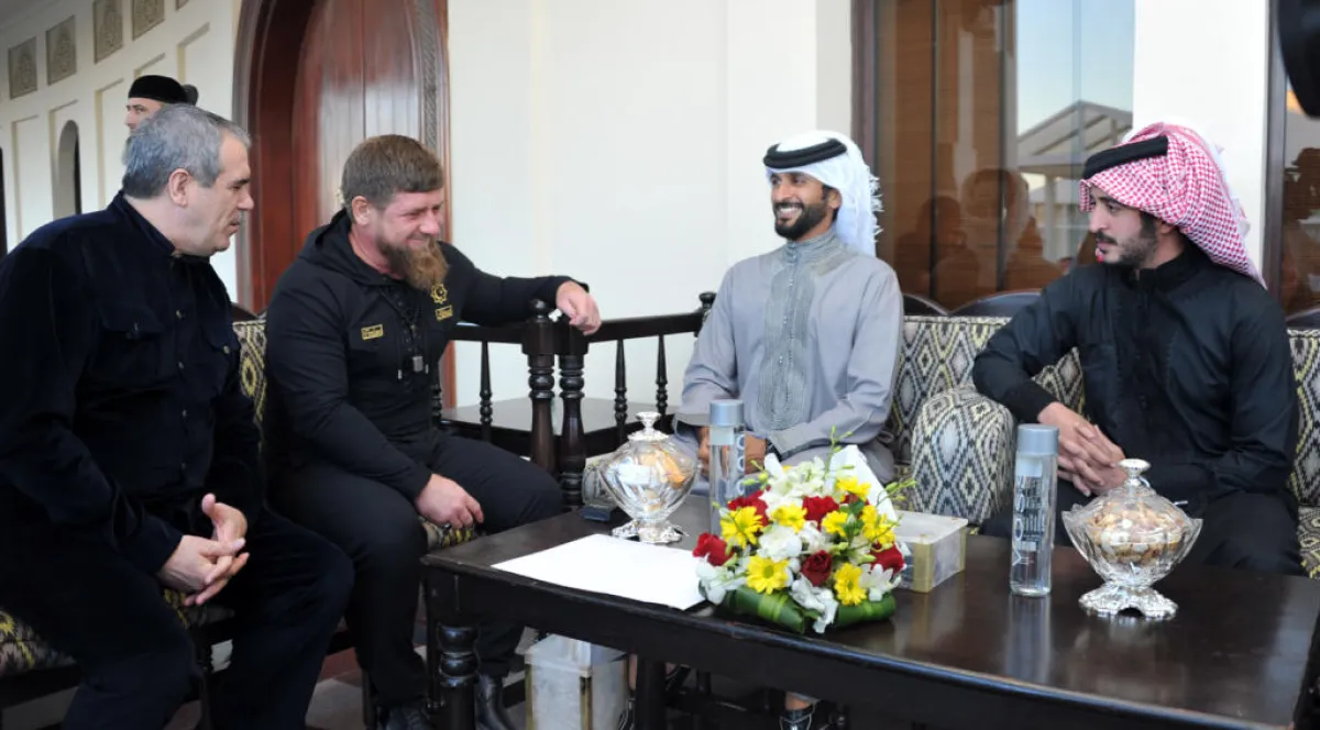 وقدم الشيخ خلال اللقاء عرضا للرئيس الشيشاني حول الجياد المشاركة في سباقات القدرة والاستراتيجية التي تتبعها البحرين للمحافظة عليها كما اطلع الرئيس على عدد من الخيول العربية الاصيلة، وشهد جانبا من تدريبات فريق خالد بن حمد لفنون القتال المختلطة حيث قدم الشيخ خالد بن حمد آل خليفة عرضا عن الفريق والمشاركات الخارجية والانجازات التي حققها، والتقى عدد من أعضاء فريق خالد بن حمد لفنون القتال ممن يحملون الجنسية الشيشانية.