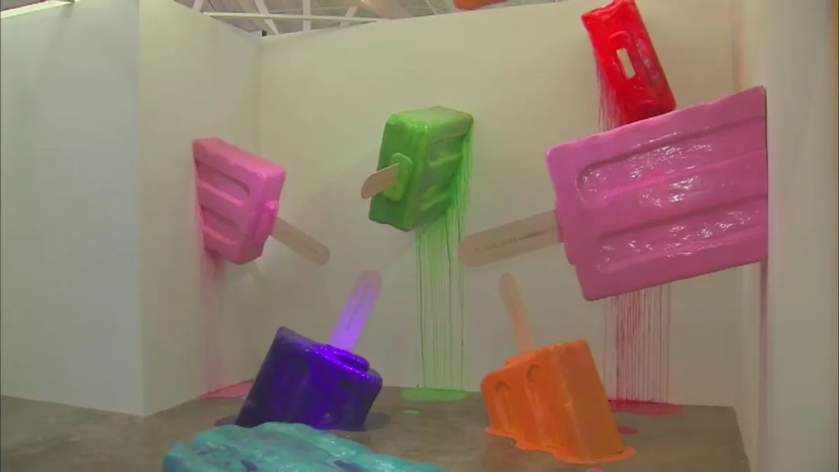وقُسِّم المعرض إلى حجرات بحسب أصناف الفاكهة التي صنعت منها المثلجات، كما شاهد الزوار مجسمات لدمى، تمثل شخصيات كرتونية يحبها الأطفال. وفقاً لـ "الوكالات".