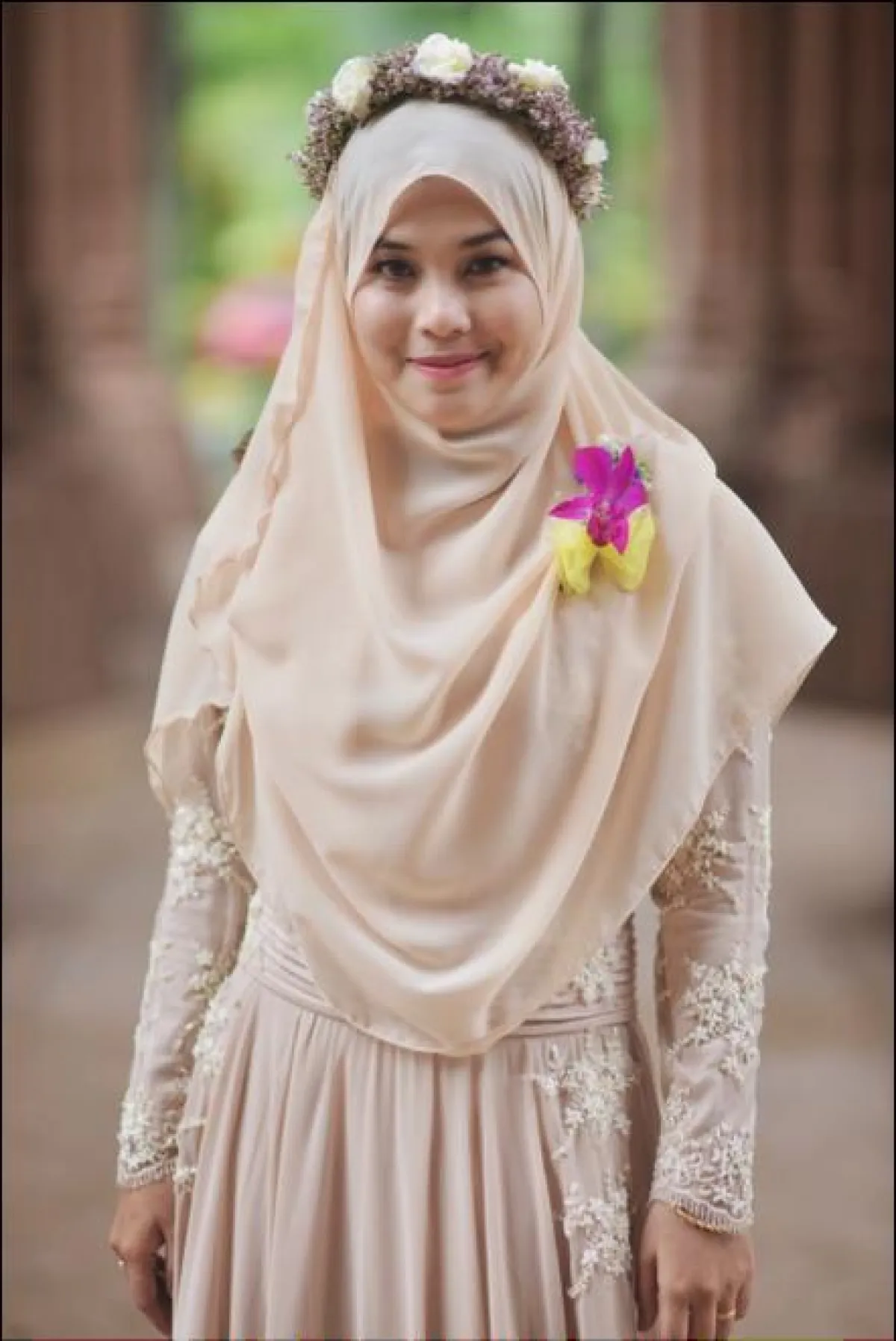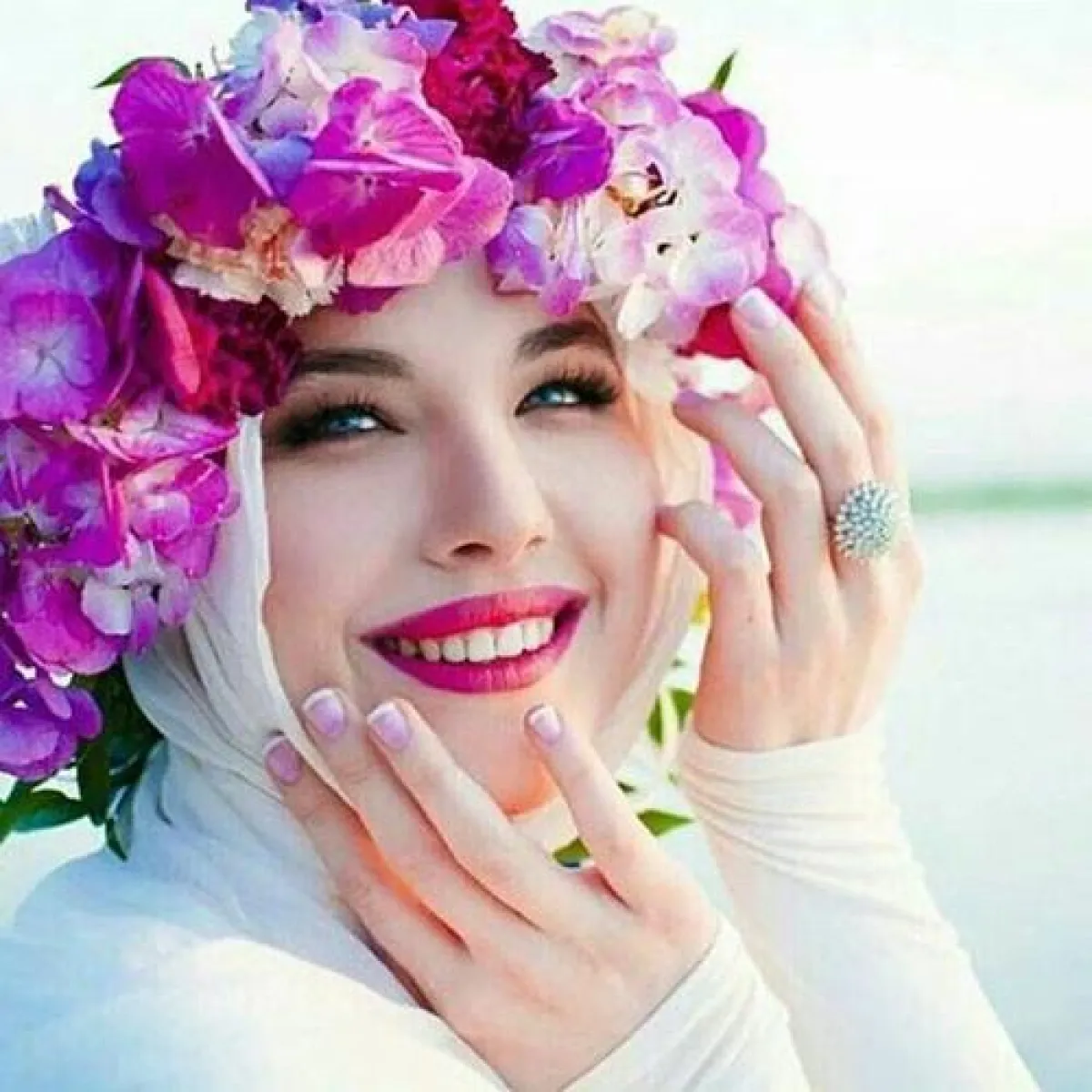 -إكليل من الزهور، وتعتمد مقاس الزهور على حجم الوجه نفسه، فلا يجوز لكِ استخدام الزهور الكبيرة في حال كنتِ من ذوات الوجوه الصغيرة، والعكس صحيح، لكن في شتى الأحوال وفي حال كنتِ تبحثين عن البساطة ولديكِ وجه كبير، لا مانع من اعتماد ورود متوسطة الحجم . ولتكن ألوانها من تدرّجات ألوان ملابسكِ والشيلة "الطرحة"، أو بألوان تليق بها .