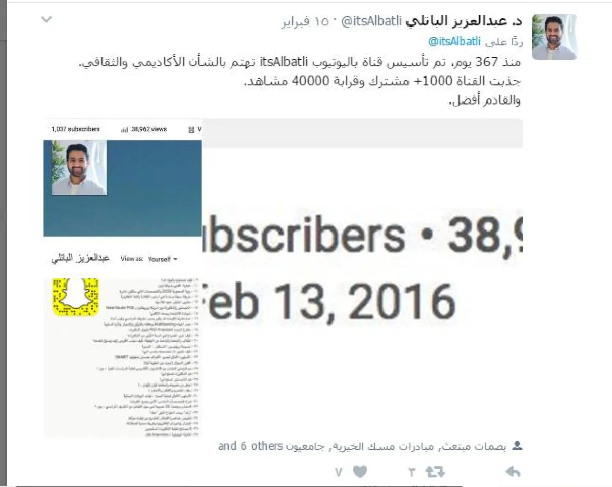 وقال الباتلي في حسابه على "تويتر": إنه أسس القناة منذ أكثر من عام على موقع "يوتيوب"، وأنها جذبت آلاف المستخدمين للموقع الذين اشتركوا فيها.