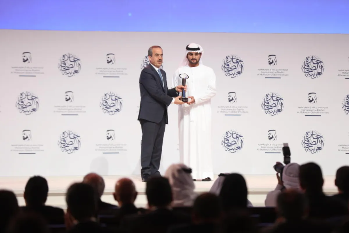 في ختام منتدى الإعلام العربي، وفي حفل رعاه محمد بن راشد آل مكتوم، نائب رئيس دولة الإمارات العربية المتحدة رئيس مجلس الوزراء حاكم دبي، والذي أقيم في مدينة جميرا في دبي، وحضره نخبة من الرموز الثقافية والإعلامية المحلية والعربية والعالمية، وصناع القرار، ورؤساء التحرير وعمداء كليات الإعلام، وممثلي أهم القنوات التلفزيونية العربية والعالمية، كرّم الشيخ مكتوم بن محمد بن راشد آل مكتوم، نائب حاكم دبي رئيس مجلس إدارة مؤسسة دبي للإعلام، اليوم الثلاثاء 2 مايو، الفائزين السبعة عشر بجائزة الصحافة العربية بفئاتها الأربع عشر والبالغ قيمة جوائزها 305 آلاف دولار، حيث اختار مجلس إدارة الجائزة، غسان شربل، رئيس تحرير صحيفة "الشرق الأوسط"، "شخصية العام الإعلامية"، وتعتبر جائزة «شخصية العام الإعلامية» ضمن 12 فئة لجائزة الصحافة العربية، وتمنح لأبرز الشخصيات الإعلامية العربية التي تركت بصمة واضحة في مجال الإعلام العربي.