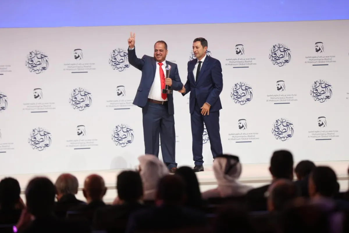 مصطفى حسني من «المصري اليوم» ومحمد أبوضيف من صحيفة «الوطن» وآلاء أبوعيشة من صحيفة «فلسطين» بجائزة الصحافة العربية للشباب.