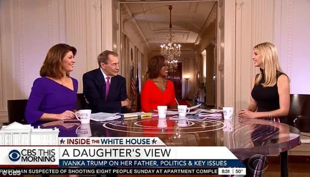 وطبقاً لموقع "ديلي ميل" البريطانية، فقد تعرضت إيفانكا للإحراج وسط فريق التصوير داخل إحدى قاعات البيت الأبيض، ولكنها حاولت أن تتخطى الموقف، فدعت زوجها جاريد كوشنر لمشاركتها اللقاء بطريقة طريفة على الهواء، إلا أن الزوج الذي اكتشف الخطأ خرج من البث المباشر واكتفى بالترحيب بعمل فريق الشبكة الأمريكية ثم غادر القاعة.