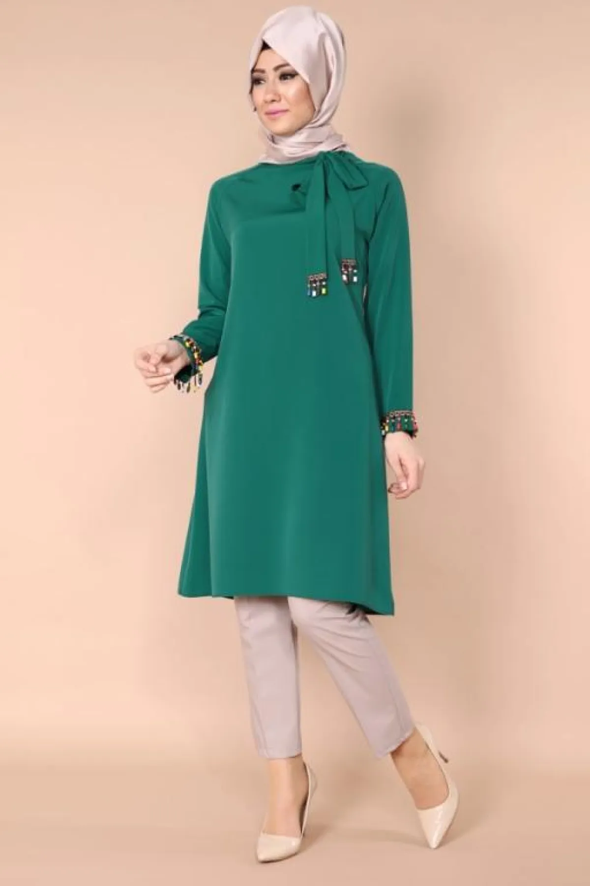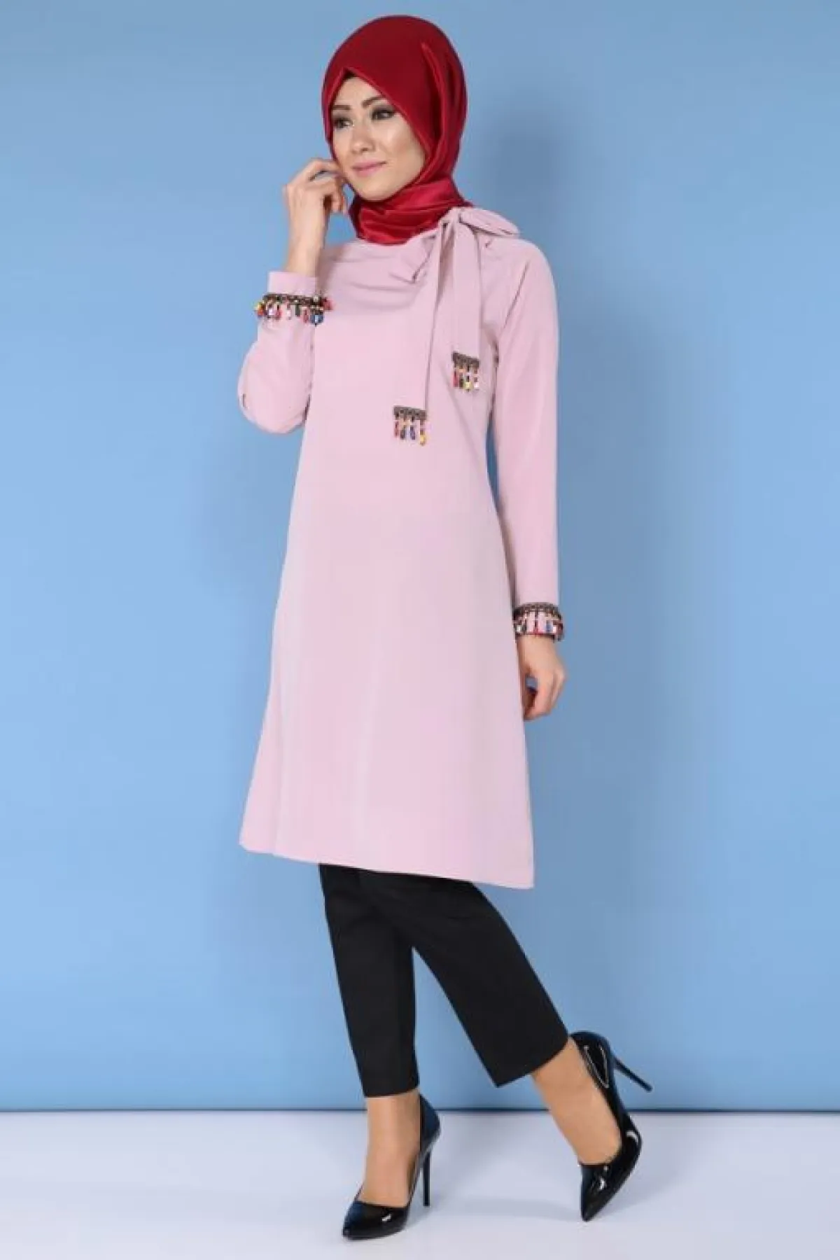 -الاكسسوار مهمّ جدًّا، بخاصة عند ارتداء التونيك الموحد اللون. لكن مع التونيك المطبّع، عليكِ باختيار الاكسسوار بحذر، علمًا أنّ عليكِ مراعاة نوع الربطة، وألوان الحجاب والإيشارب أو الشيلة، عند وضع الاكسسوار .