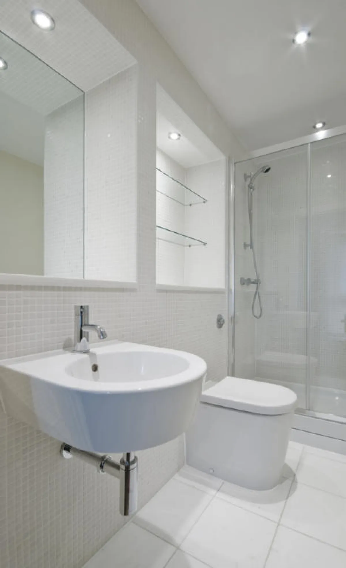 6. الأبيض هو الاختيار الصائب للحمّام، ولا سيما ذلك ضيق المساحة. ولكن، لإبراز بعض القطع في الحمّام، يمكن إدخال أي لون قوي أو محايد.