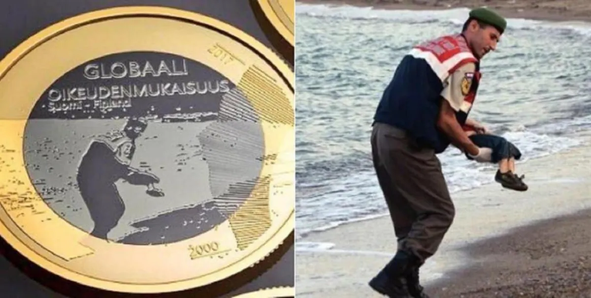 ووفقًا لـ«24»، فإن فنلندا أرادت بطباعة صورة الجندي التركي وهو يحتضن جثة الطفل الغريق على عملتها لفت الأنظار لضرورة الاهتمام بحقوق الإنسان.