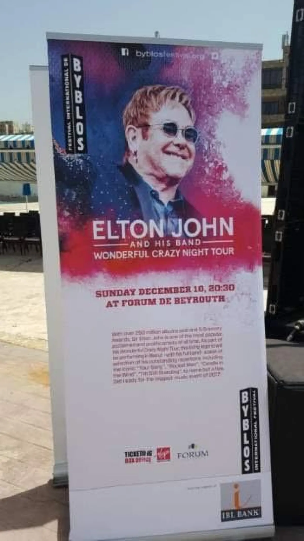 أعلنت إدارة مهرجانات جبيل الدوليّة، أنّ النجم العالميّ إلتون جون Elton John سيقف هذا العام على مسرح "الفوروم دي بيروت"، ليقدّم للشعب اللبنانيّ حفلًا مميّزًا بتاريخ 10 كانون الأول/ديسمبر 2017.